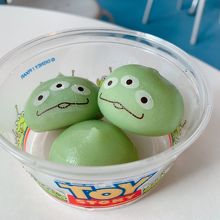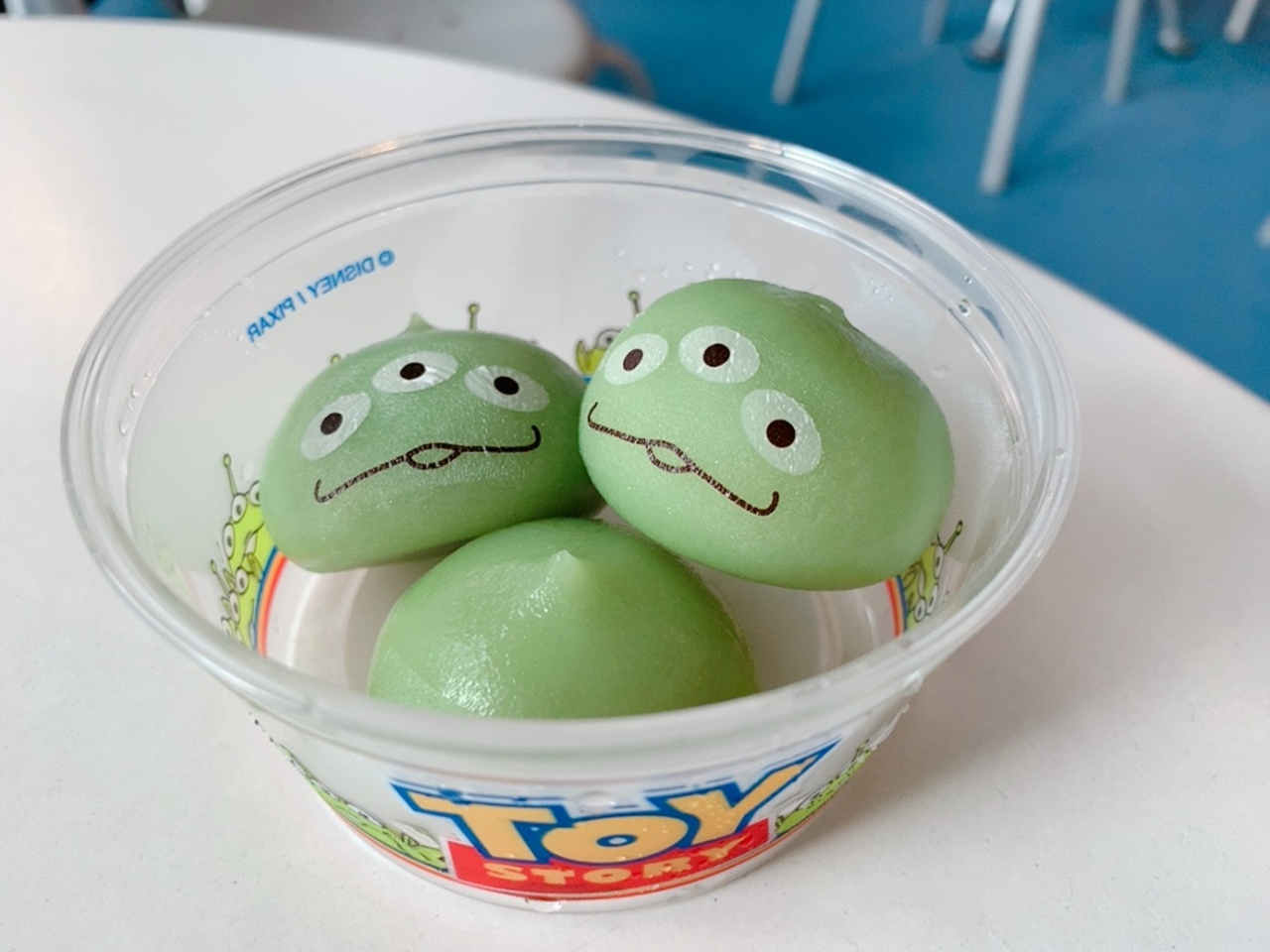 ピザも売ってるようですが、私はここで食べることが出来るリトルグリーンまん目当てで行きました。 トイ・ストーリーというか、PIXAR作品のすべてのキャラの中でベスト3に入るくらい好きなキャラで、ちゃんと忠実に再現されたおやつです! プラスチックカップもトイ・ストーリーの物でなんか嬉しい!