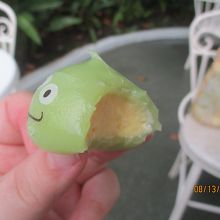 リトルグリーンまんのスゴイ所は、3つ入ってて3つとも中身が違う事です! カスタードクリーム、いちごクリーム、チョコクリームでした。 チョコクリームが1番美味しかったー! 写真も撮って楽しかったです!