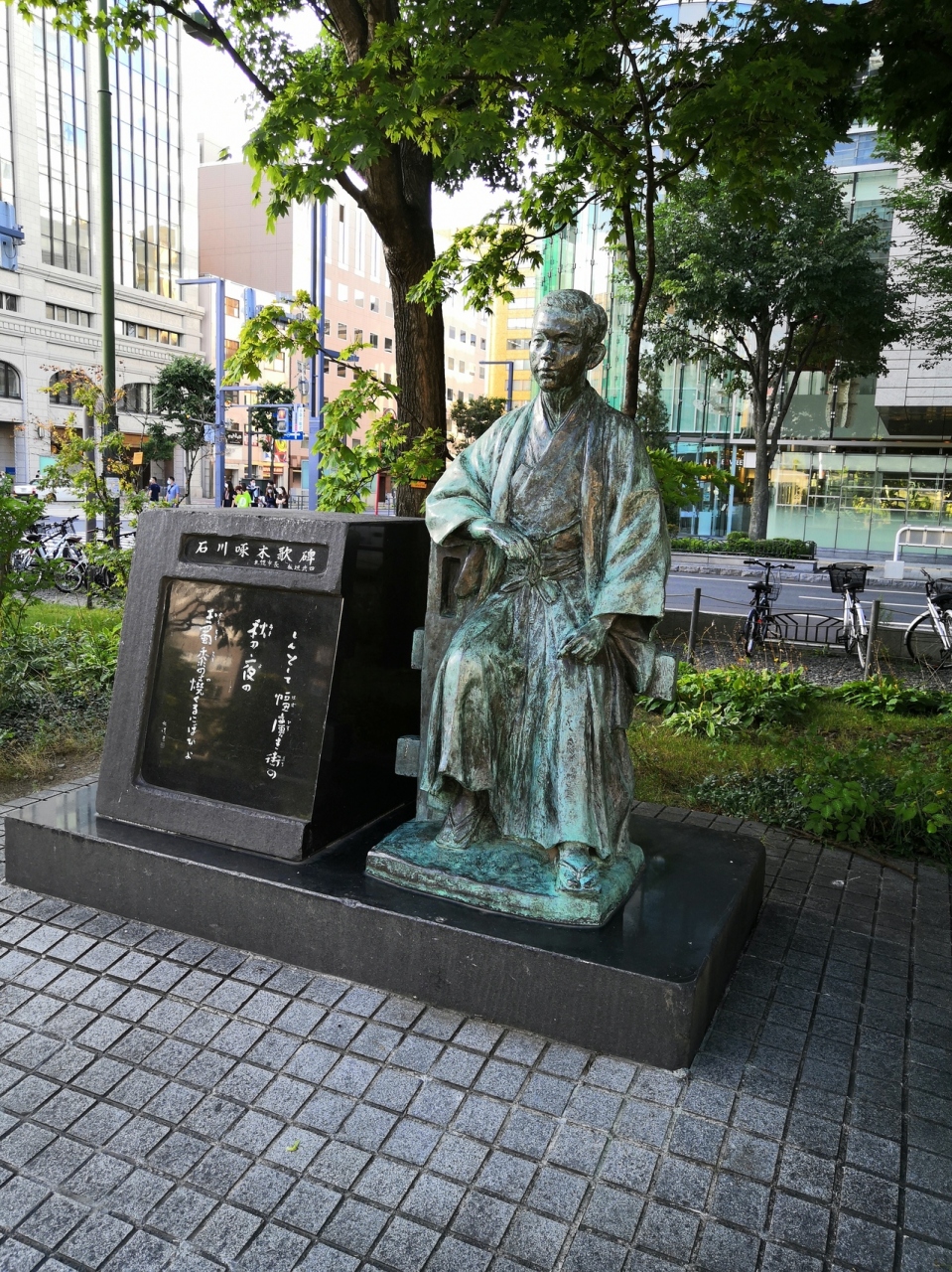 大通公園にあるモニュメントの一つです。石川啄木は1907年9月14日から27日まで2週間ほど札幌に滞在しただけだそうですが、歌集の(一握の砂)の中に札幌の印象を詠んだ句があって、その一首だそうです。どこかあどけなささも感じさせた像でした。