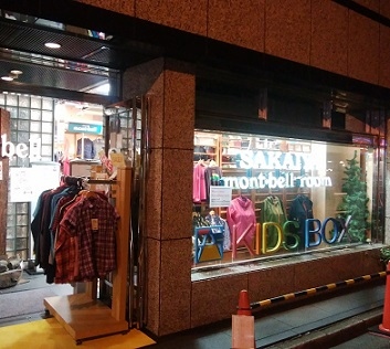 登山やアウトドアグッズを扱う『さかいや』を利用、グッズやウェアなど数店舗に分かれています。写真のさかいやスポーツモンベルルームにはモンベル以外のウェアも取り扱いがありました。ちなみに、さかいやさんは袋が有料です。
