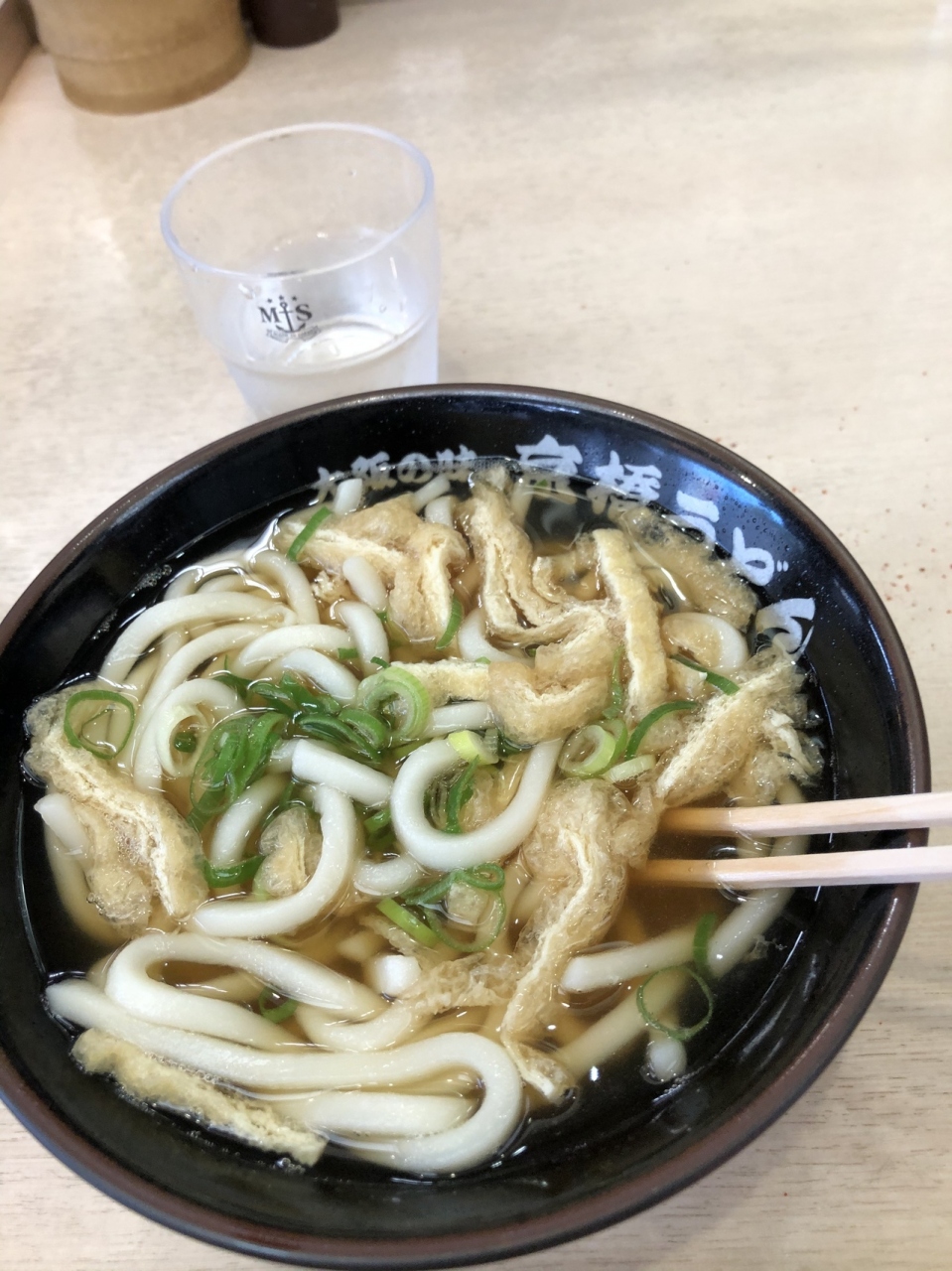 券売機でチケット購入。奥のカウンターで受取り、店外で立ち食いしました。昼前のため客は少数。うどんは、しっかりとした出汁にやさしい甘い目の味付けが沁み渡る。美味しかったです。席、消毒など予防対策はありました。