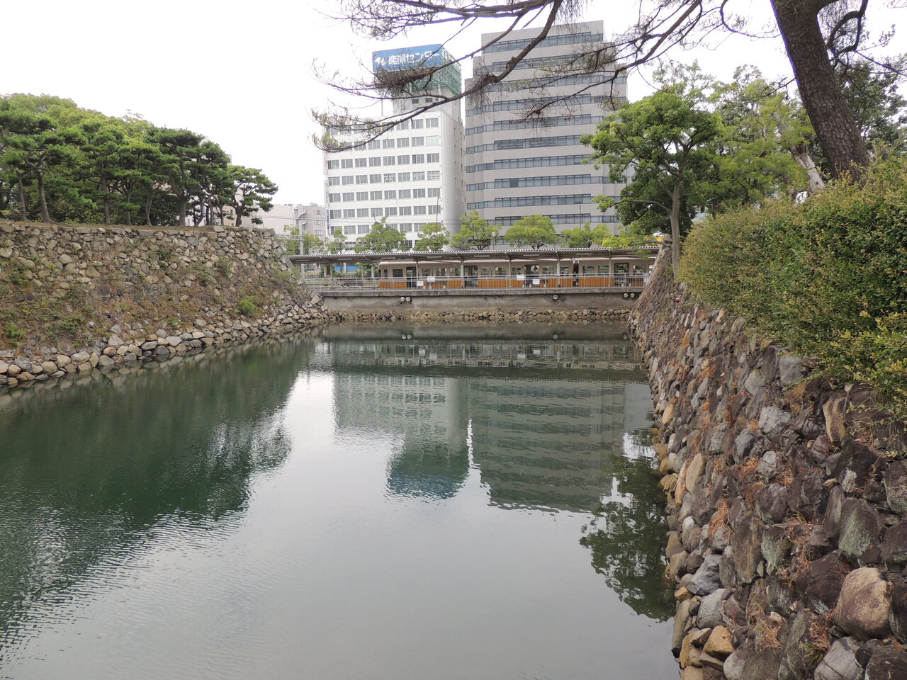今回実際に乗車したのは、栗林公園東門から10分くらい歩いて、栗林公園駅から瓦町駅までの一駅でした。スイカも使えました。玉藻公園の高松城跡を見学していたら、堀のすぐ向こうにホームが見えました。毎日利用している方は毎日城跡が見られて羨ましい。