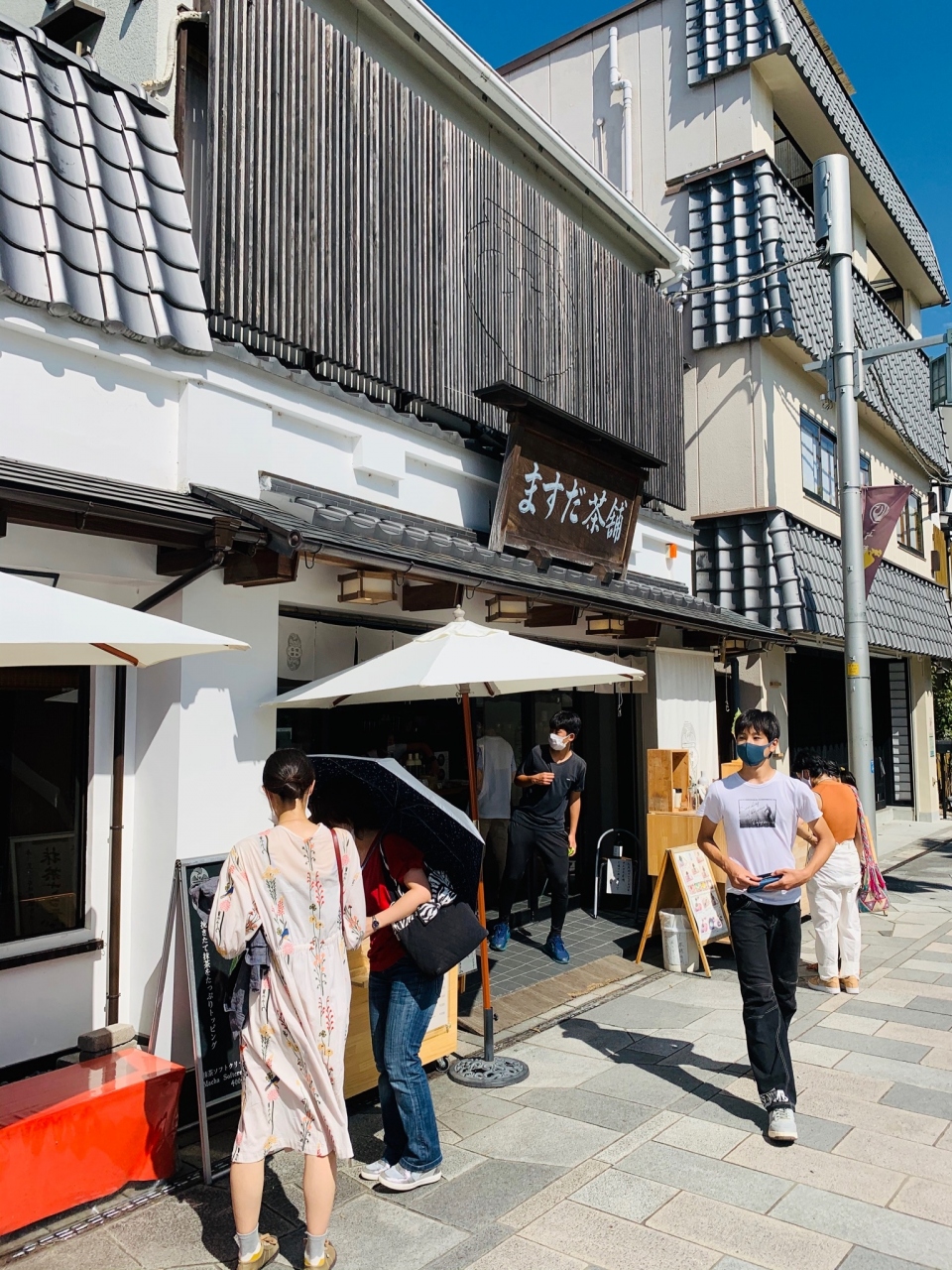 このお店 【 ますだ茶舗 】は お客さんでいっぱいでした。若い男の子もたくさんいました。