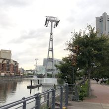 今は来年?オープンのロープウェイの橋脚がすぐ横の川に建てられており、すぐそこをゴンドラがいくのかと楽しみになります。夜なんかはとても綺麗そうです。