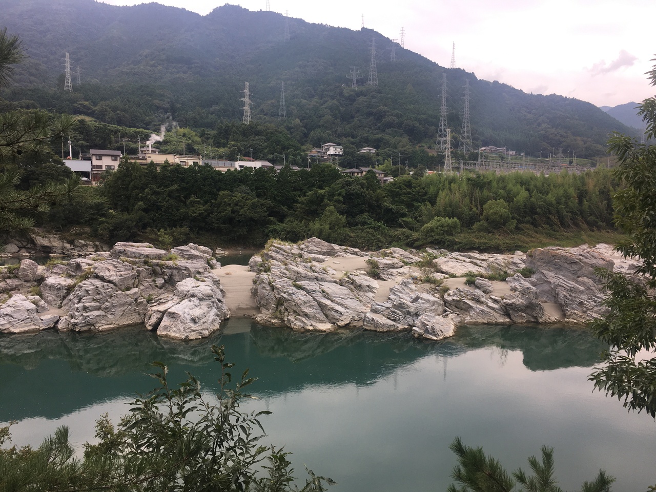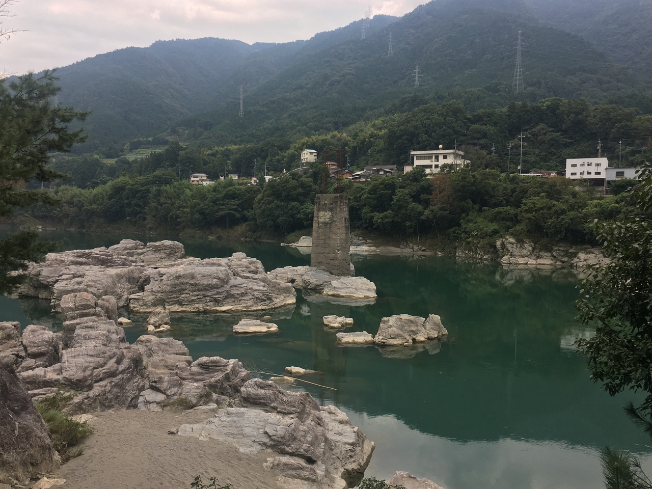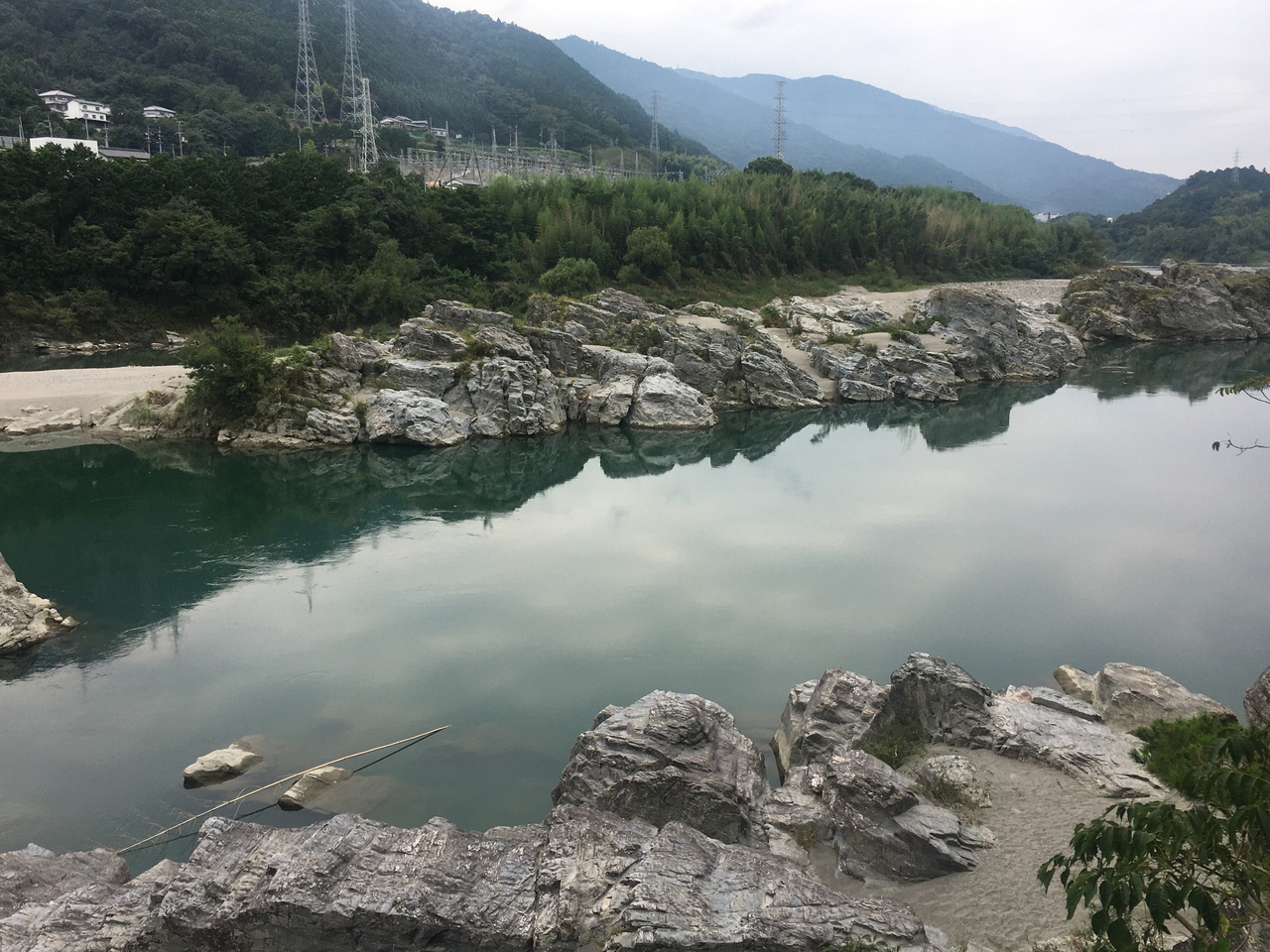 吉野川の中流域にあり、川の流れが作った岩が独特の景観を生み出しています。