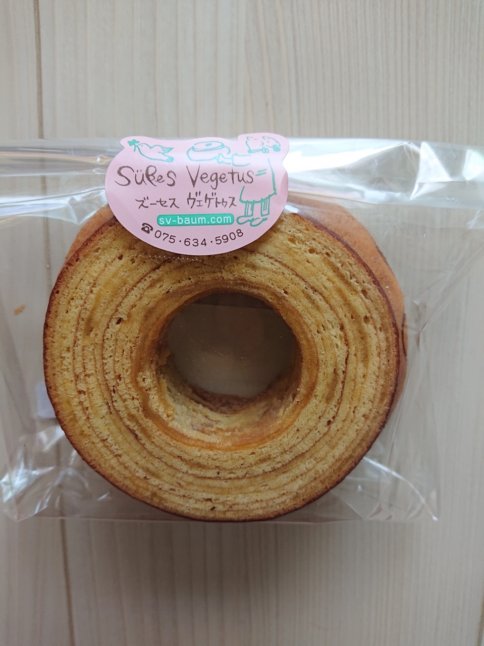 京都ではなく、今回は神戸阪急のバウムクーヘン博覧会にて購入しました。毎日見に行っていたのですがいつも売り切れてだったので、百貨店のオープンと同時に売場に行くと、三人ぐらいが群がって奪い合い。そりゃ~、毎日売り切れてるはずです。マツコさんのテレビの影響ですね。何とか一つゲットしていただきました。ハチミツの自然な甘さで美味しかったです。