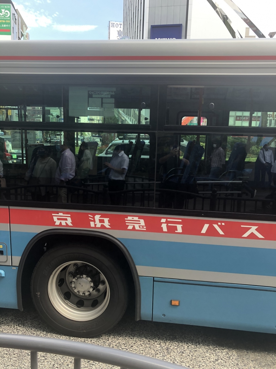 横浜駅から羽田空港へ行く時、京浜急行の生麦駅付近で事故があり、ダイヤが乱れていたので、京浜東北線で蒲田駅まで行ってから、バスに乗りました。平日の午後1時頃でしつが、車内の席は空いてなく、意外と乗車する人がいました。羽田空港シャトルバスだったので、途中、大鳥居しか停車しませんでした。