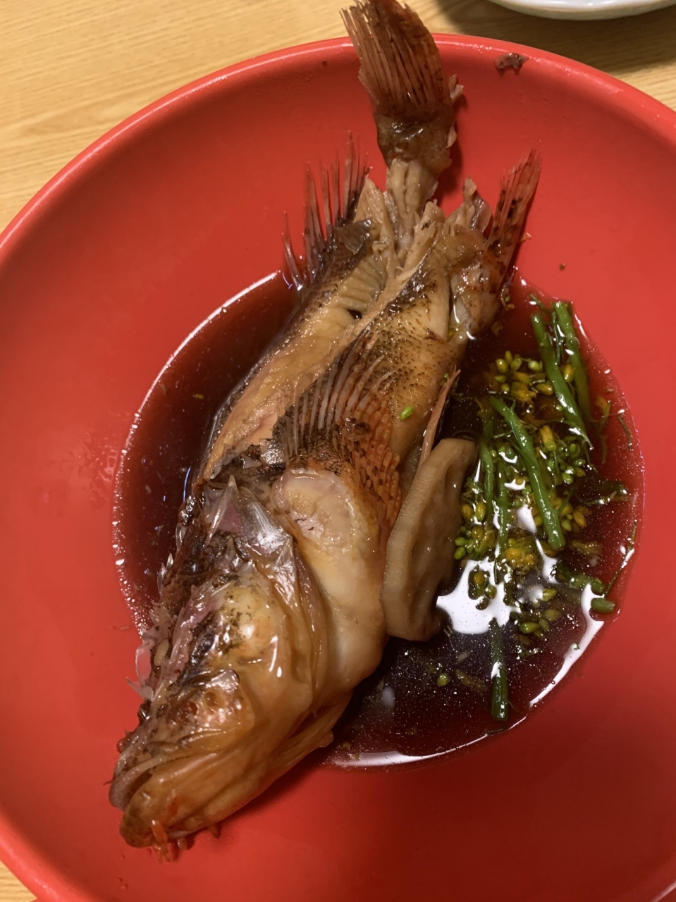 夜ご飯に家族と利用しました。お店の入り口では検温、消毒とできるだけのコロナ対策もされていました。カサゴの煮付けを注文。入り口付近の大きな生簀に生きたカサゴがいて、会計時帰りに泳いでいる姿を見ることができました。