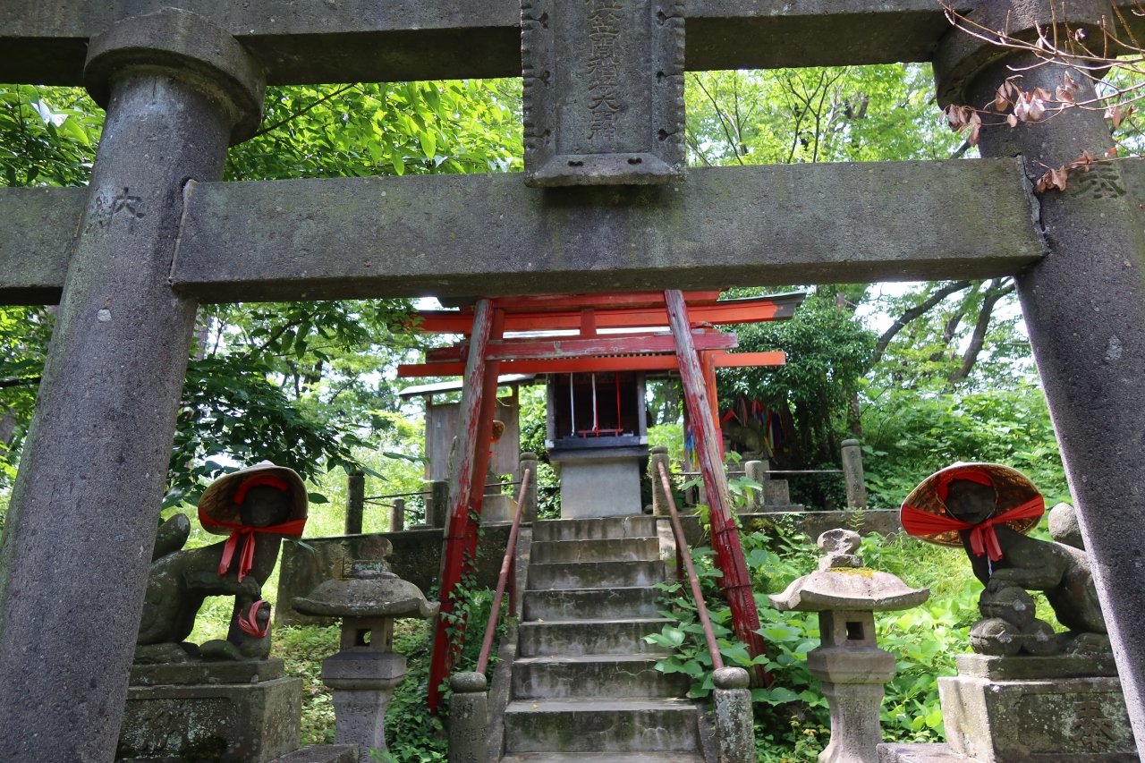 鶴ヶ城の本丸には二つの稲荷神社があります。一つは太鼓門の近くにある鶴ヶ城稲荷神社、もう一つは鉄門の近くにある笠間稲荷神社です。鶴ヶ城稲荷神社は築城時かある神社で鶴ヶ城の鎮護として祀られ、参拝客も多いです。一方、笠間稲荷神社は北向きに建つ珍しい神社ですが、訪れる人は殆どいません。場所の違いでしょうか。