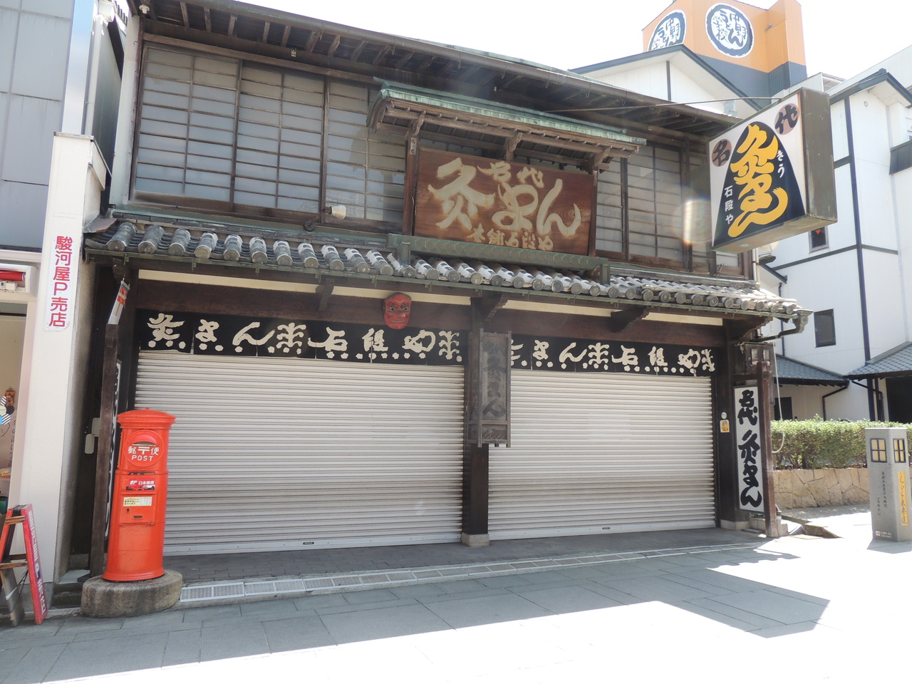 金比羅さんに行ったら絶対立ち寄りたいと思っていた店舗なのに、行ってみたら閉まっていました。形がもぐさのお灸の形のおまんじゅうとして有名ですが、参道のお土産屋さんでも販売していました。本店の建物は参道でも最も古い建築の一つだそうです。