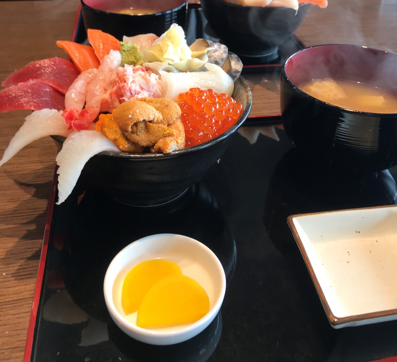 本店の方をランチで利用しました。人気店で、入店まで少し待ちました。普通の海鮮丼もありますが、名物だという特上海鮮丼(1,800円)を注文しました。丼からはみ出るほどのネタがのっていて、イクラやウニも入っています。今までに食べた海鮮丼の中で一番と思うほど満足できました。わざわざ食べにくるだけの価値はあると思います。