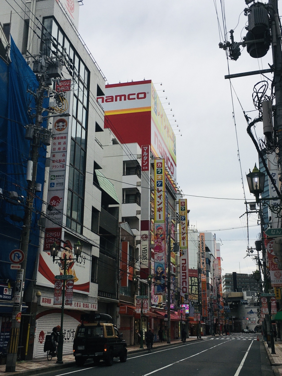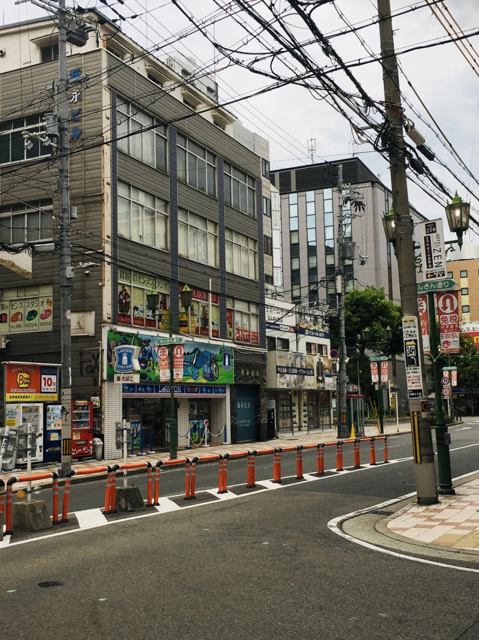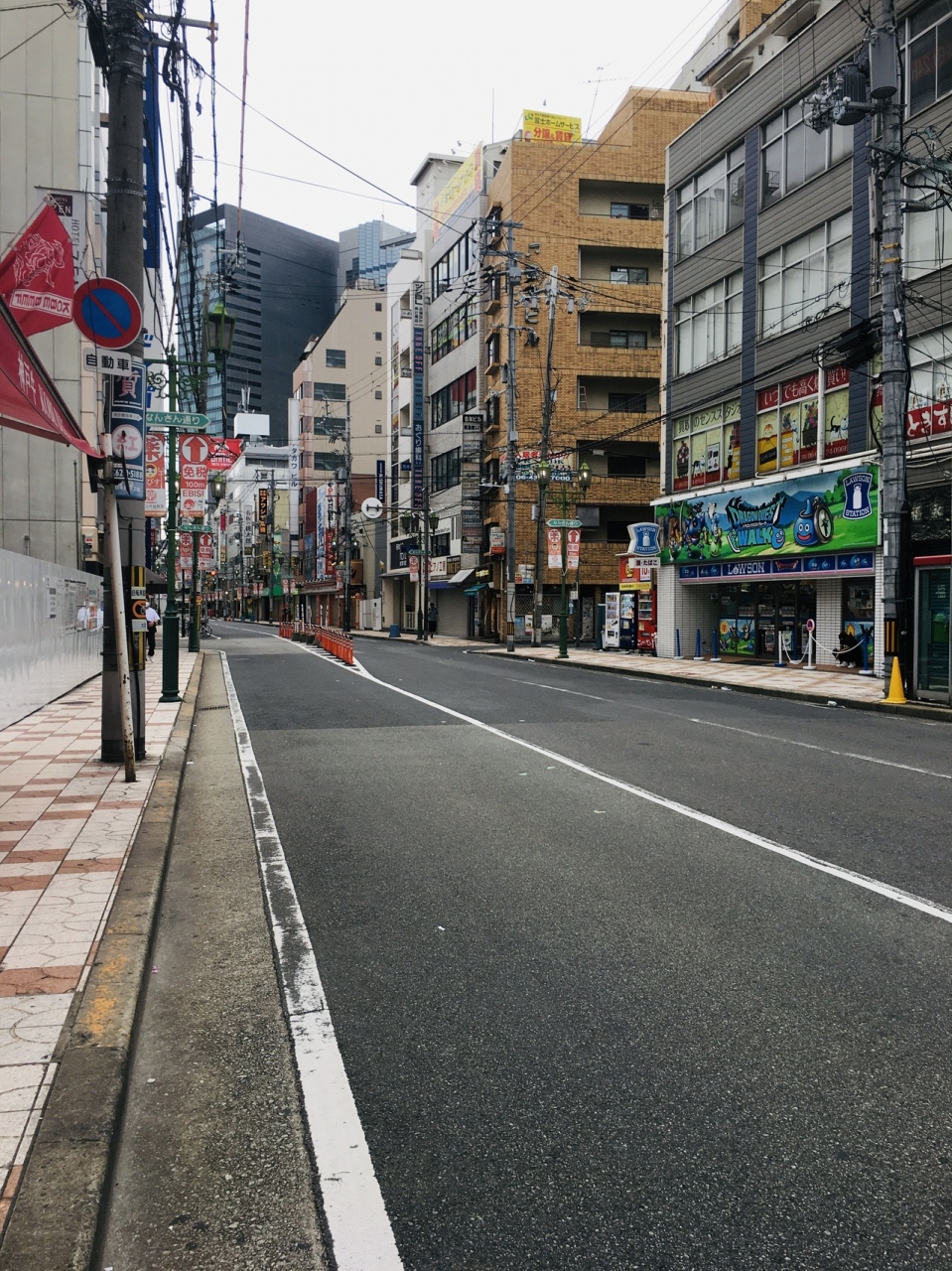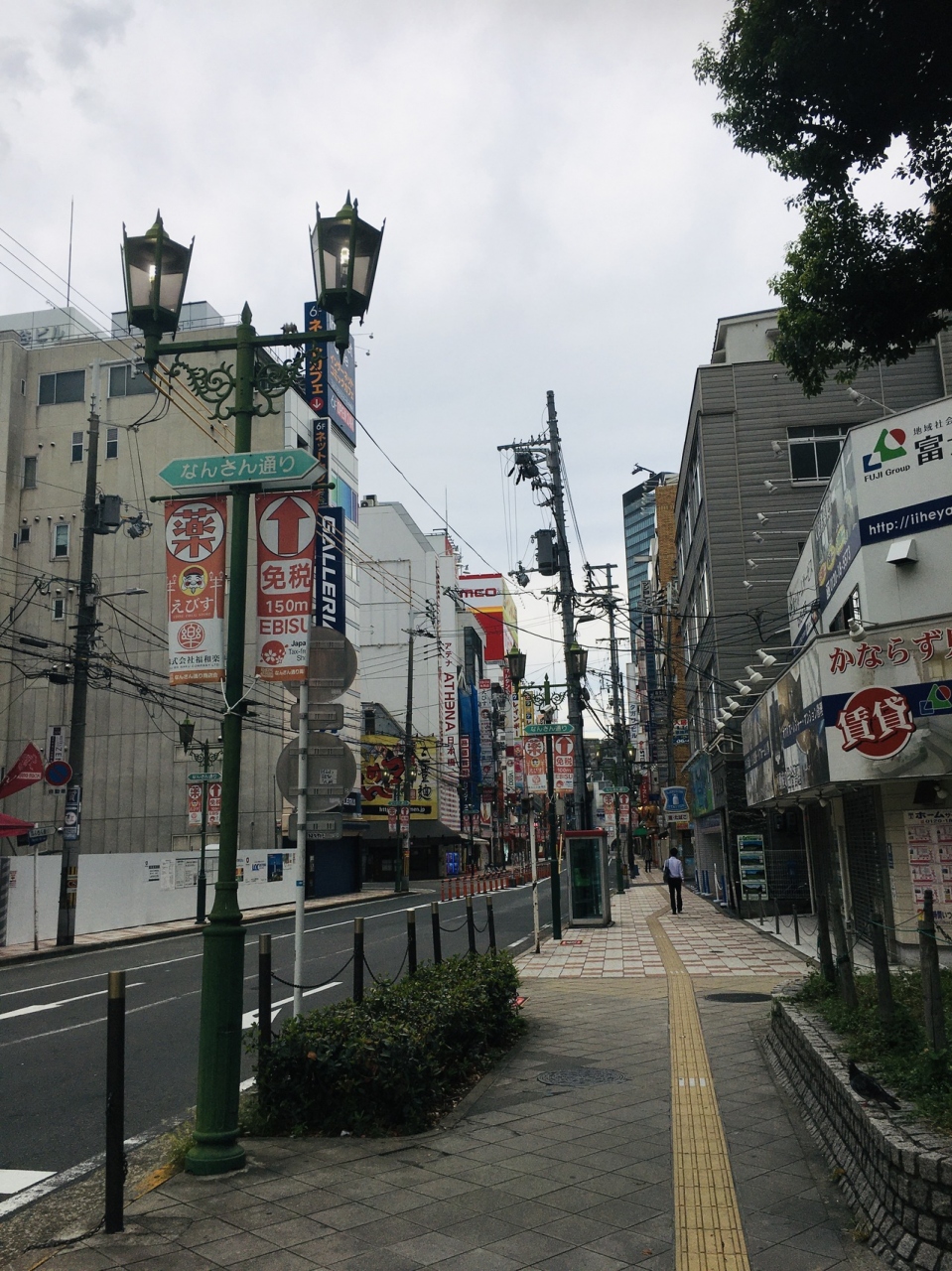 高島屋別館付近から歩くと牛丼屋や食べ物屋、コンビニがあります。2分ぐらい歩くと左右に電気屋が固まっていました。通りにはあまり店がなかったですが、なんば方面に向かうに連れて店が増えてきました。特徴がない普通の道でした。