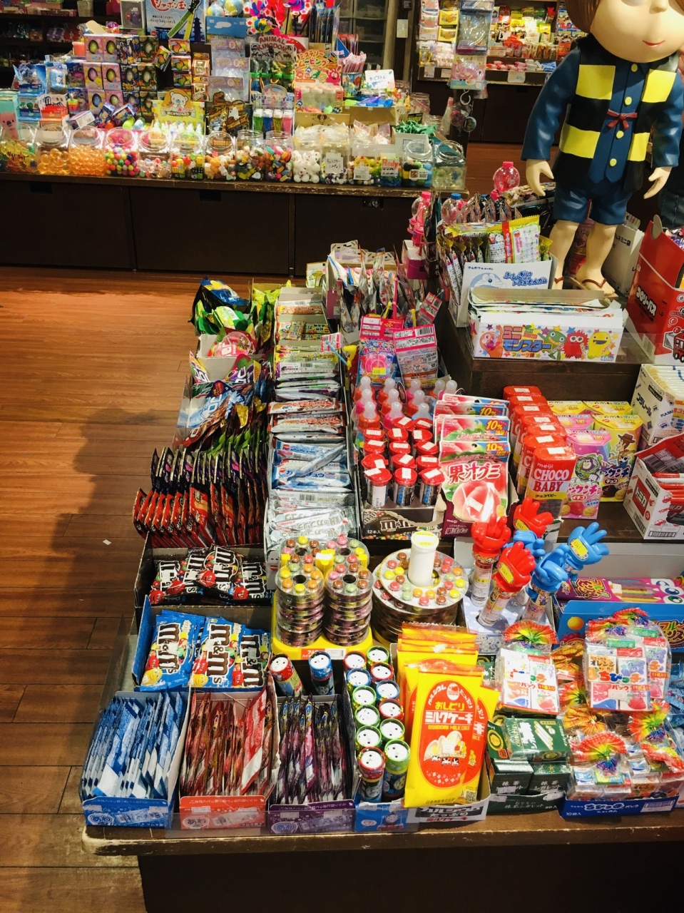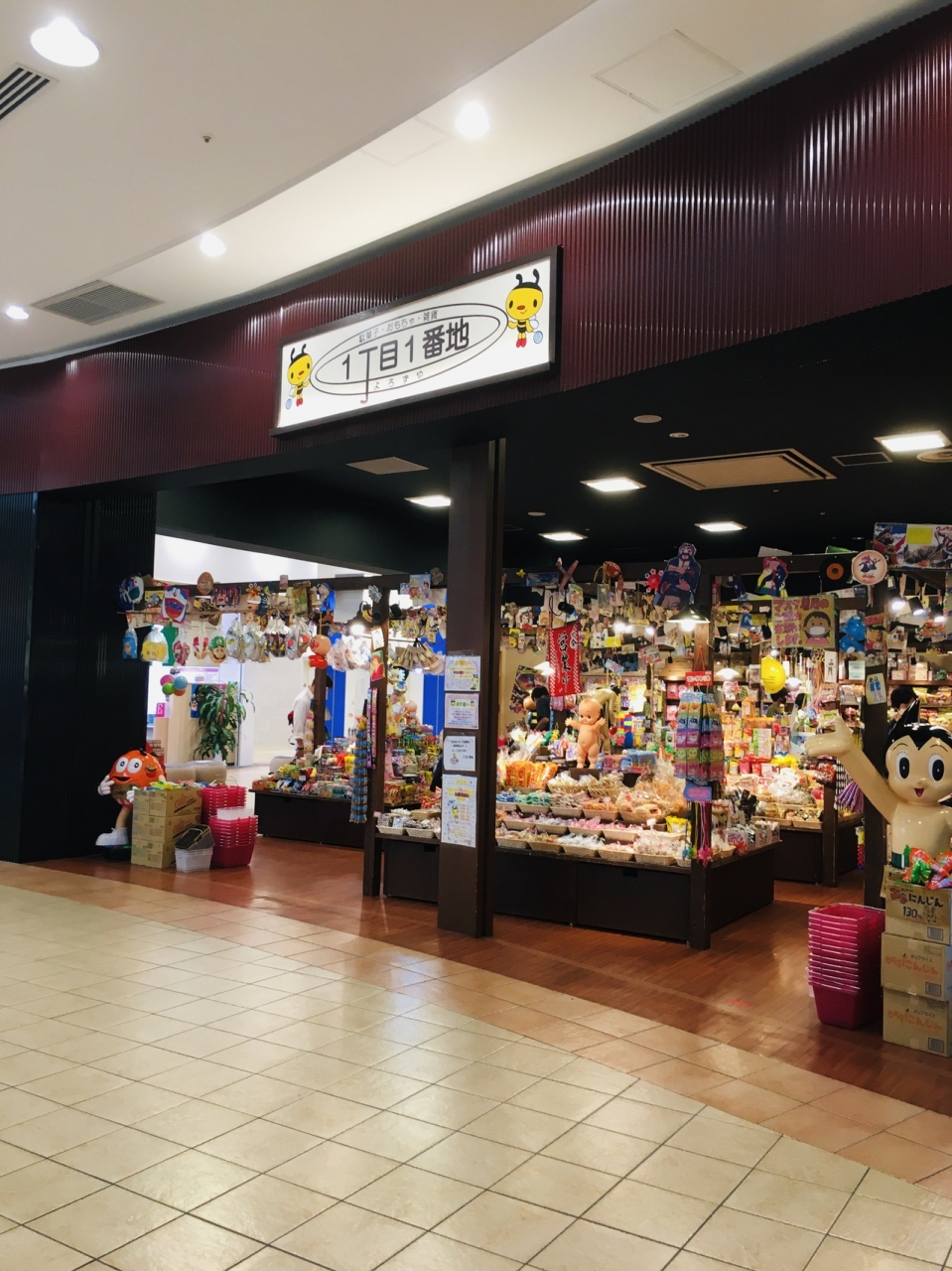 鉄腕アトムやゲゲゲの鬼太郎の大きな模型がある駄菓子屋で、駄菓子屋としては店内も広く通路も大きめでした。小さな籠に駄菓子を入れて買い物出来、小さな子供のほか、大人が多くいました。低価格で購入出来るのが良いです。