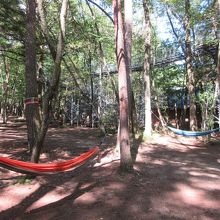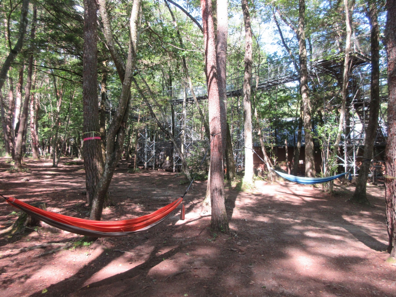 国道20号線沿いの道の駅はくしゅうの横の道を山へ向かって車で3分ほど進んだところにあります。メインゲートから入り、林の中の駐車場に車を停めました。温泉施設、キャンプ場、宿泊施設、レストラン、体験しながら遊べる施設などが広い森林の中に点在しています。平日午前9時過ぎに訪れました。総合案内所のスタッフが清掃をしていました。柵内で飼育されているヤギとアイガモは食事中でした。自由に利用できる林の中を空中散歩できる設備やハンモックが木々に吊るされていました。林の中を通って尾白川堰堤へ行くことができます。駐車場のそばに白州尾白天然水が湧き出ている水汲み場があるなど、のんびりと森林浴を楽しめる公園です。GWや夏休み期間中は有料ですが、訪れた9月は無料でした。子ども対象の木工細工体験や週末には謎解きなど一日楽しめるイベントが用意されています。お子さんと一緒に遊んではいかがでしょうか。