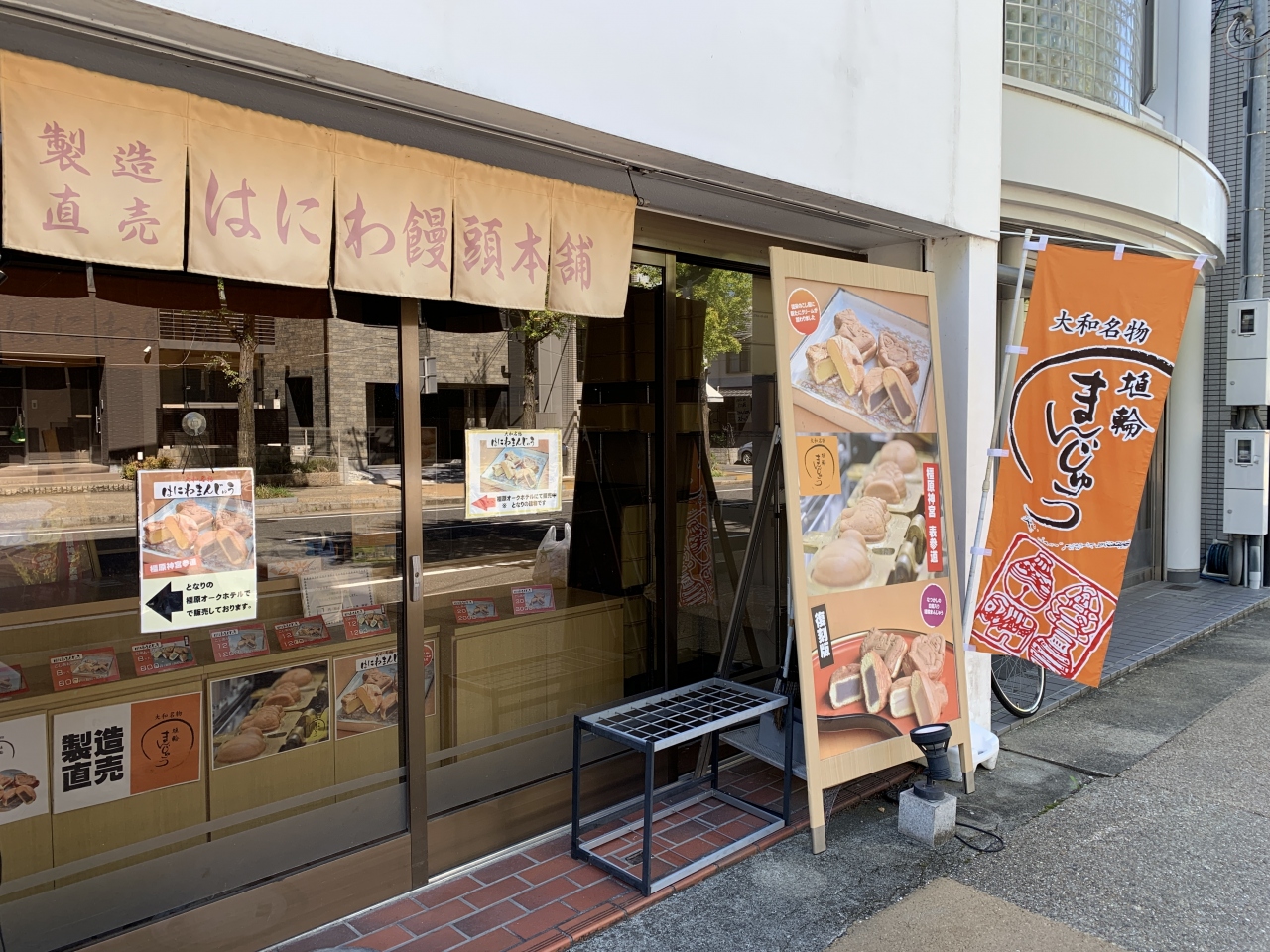 橿原神宮前駅より神宮の山道に向かう途中のホテルの隣にこの埴輪まんじゅう本舗があります。