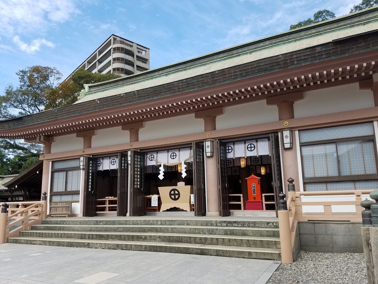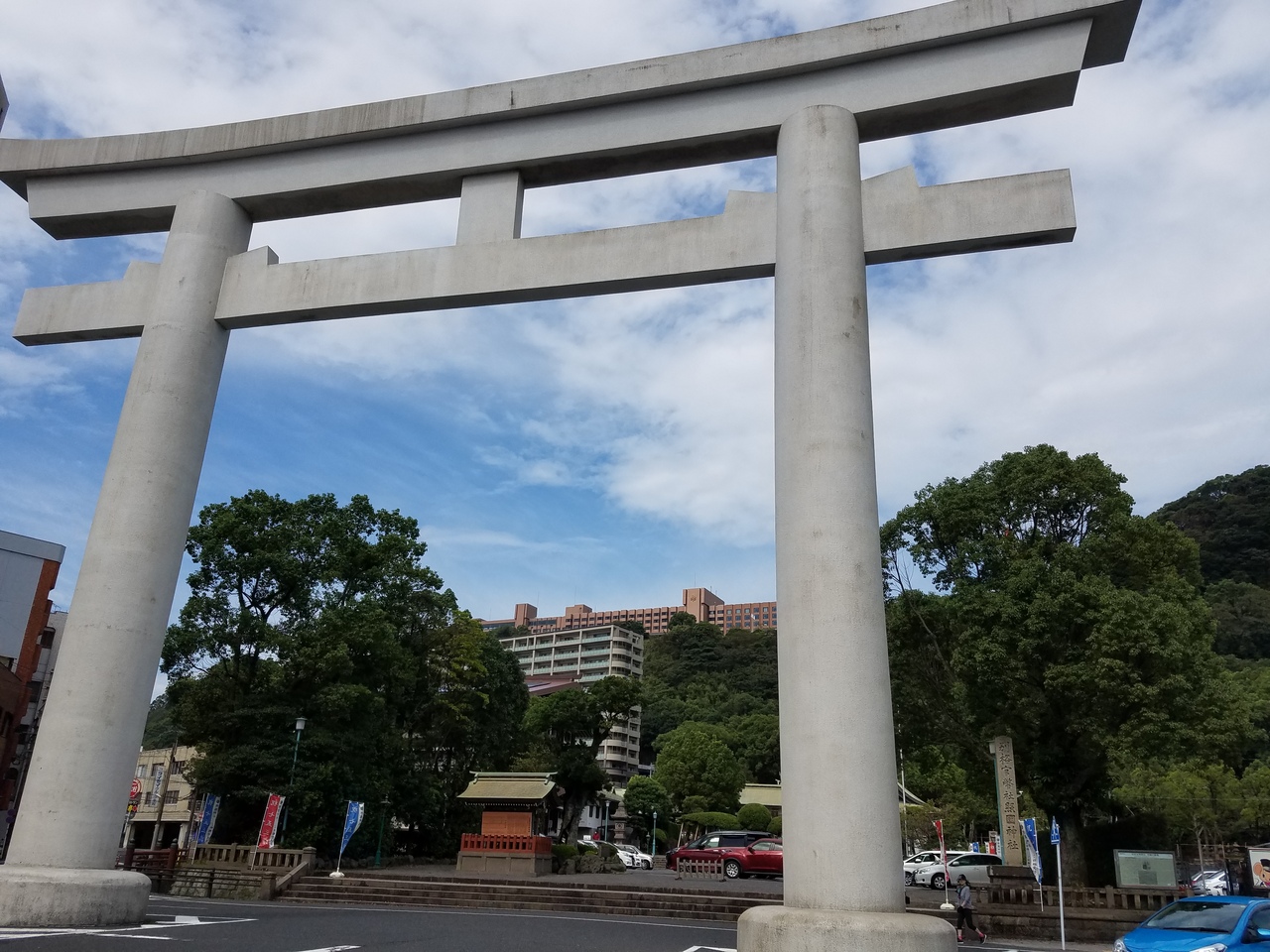 天文館から歩いて行きました。10分位かかったと思います。連休に伺いましたがちょうど七五三の時期で可愛い着物を着飾った子ども達や生まれたばかりであろう赤ちゃんを見ることができました。神社の鳥居は大きく凄い存在感でした。