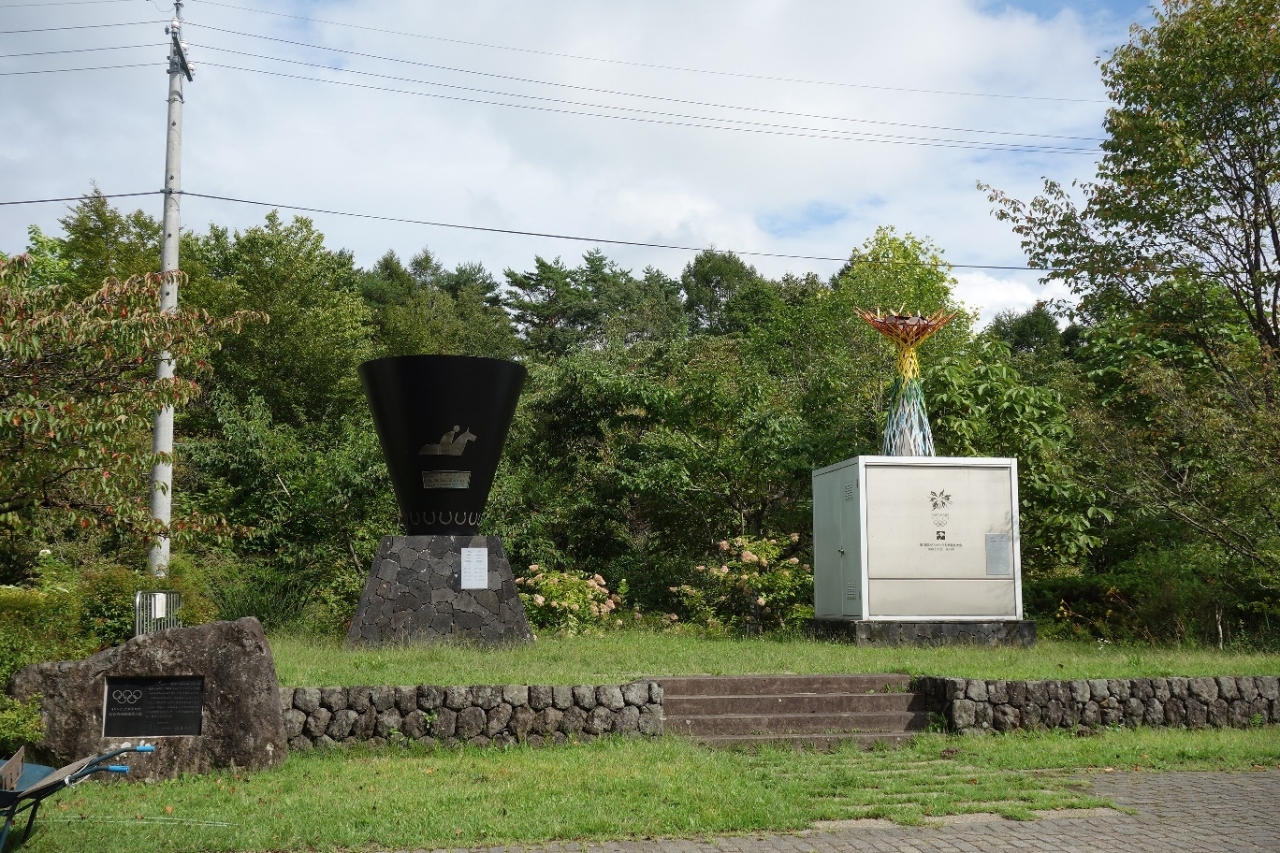 軽井沢に滞在中、風越公園を訪れた際こちらの施設のあたりを散策しました。公園入口から奥の方へ進むとスカップ軽井沢、軽井沢町植物園展示館が有り、その横にオリンピック開催を記念して置かれた二つの碑が有ったので見学してきました。