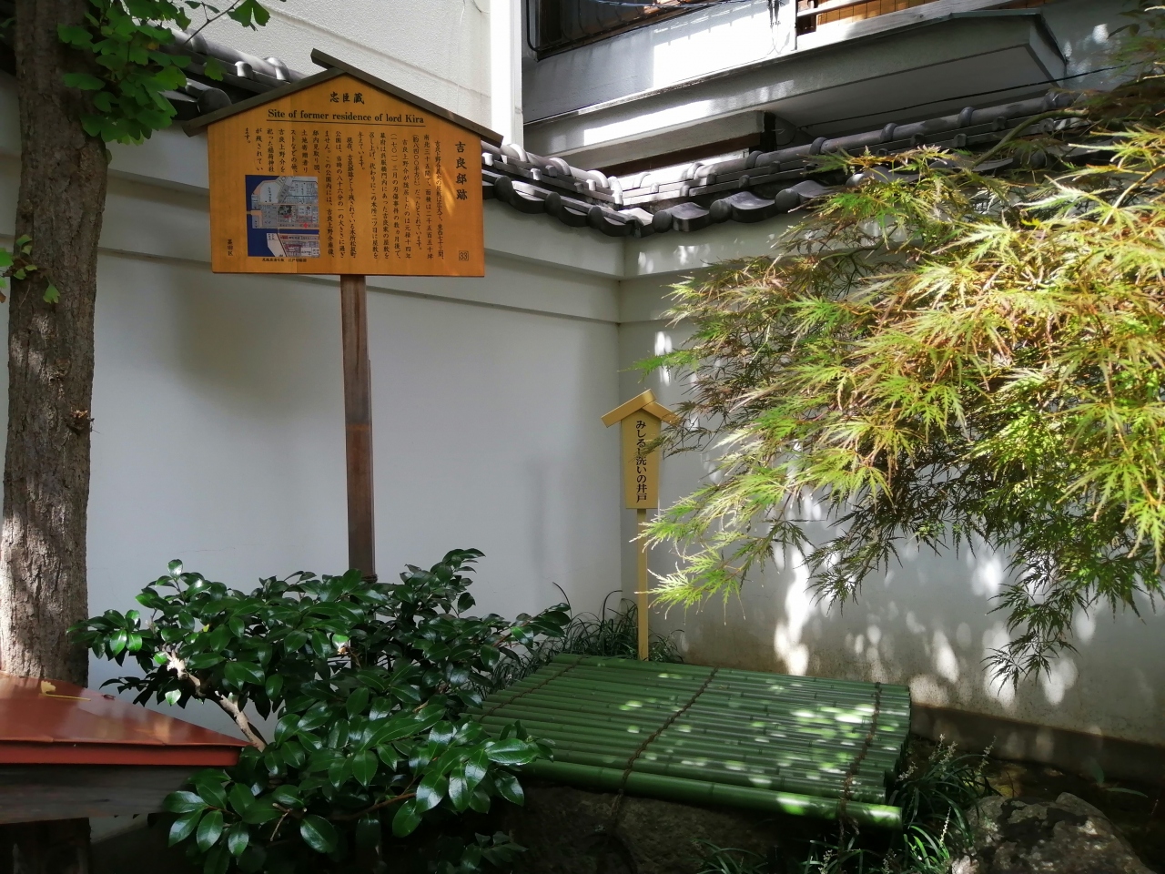 両国には、忠臣蔵で有名な吉良上野介の屋敷がありました。実際に居を構えたのは1年半ほどで、その跡が公園になっています。小さな公園ですが、吉良上野介の座像や、赤穂浪士が討ち取った吉良上野介の首を洗ったという井戸があります。