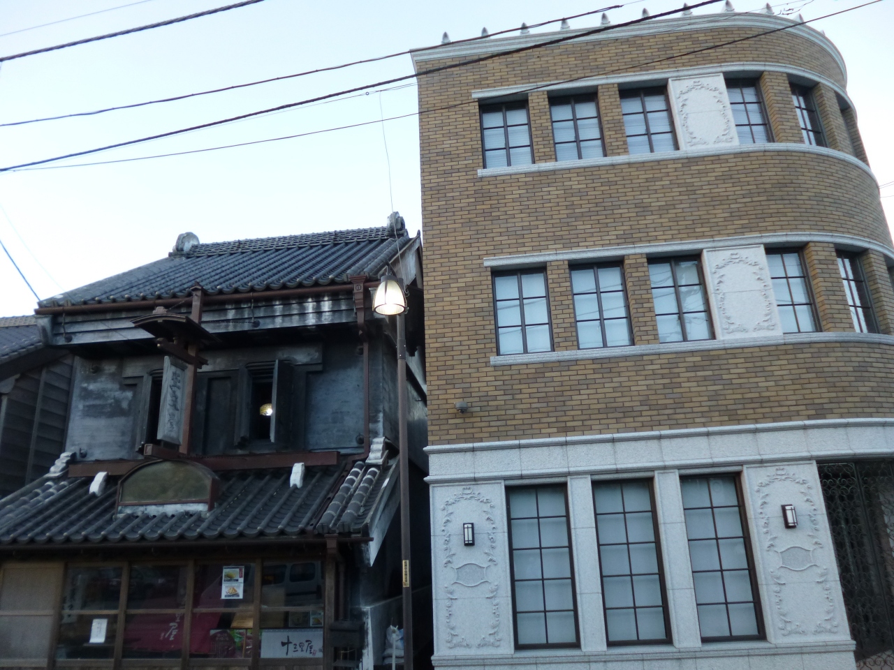 佐原の伝統的商家の立ち並ぶ街並みの中にあります。忠敬橋のすぐ近くにある、土蔵造りの目立つ建物です。明治13年の建築で、黒塗りの土蔵を店舗として利用した店蔵という形式の書店です。保存地区の建物中でも、小さいながらも重厚感のある建物です。