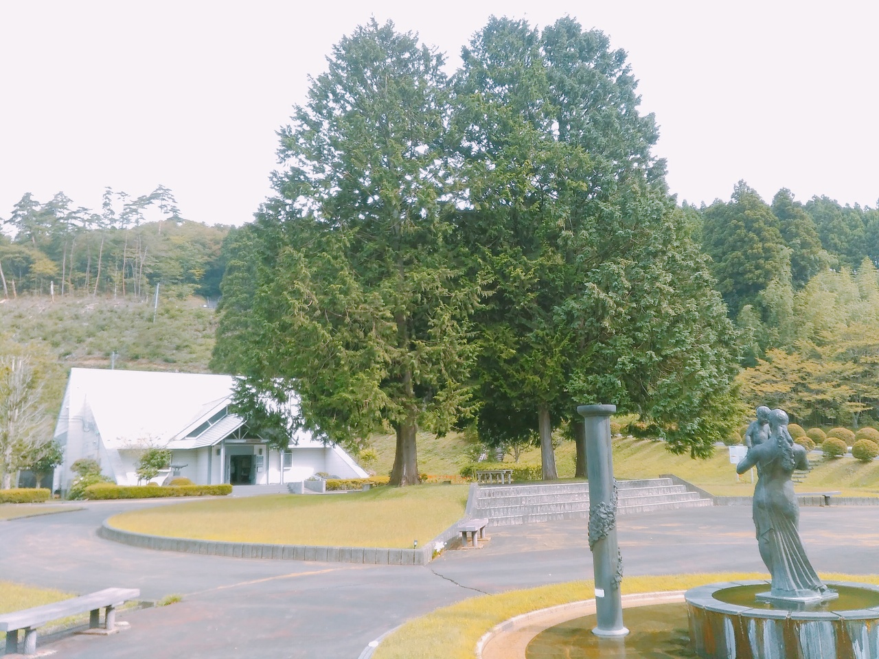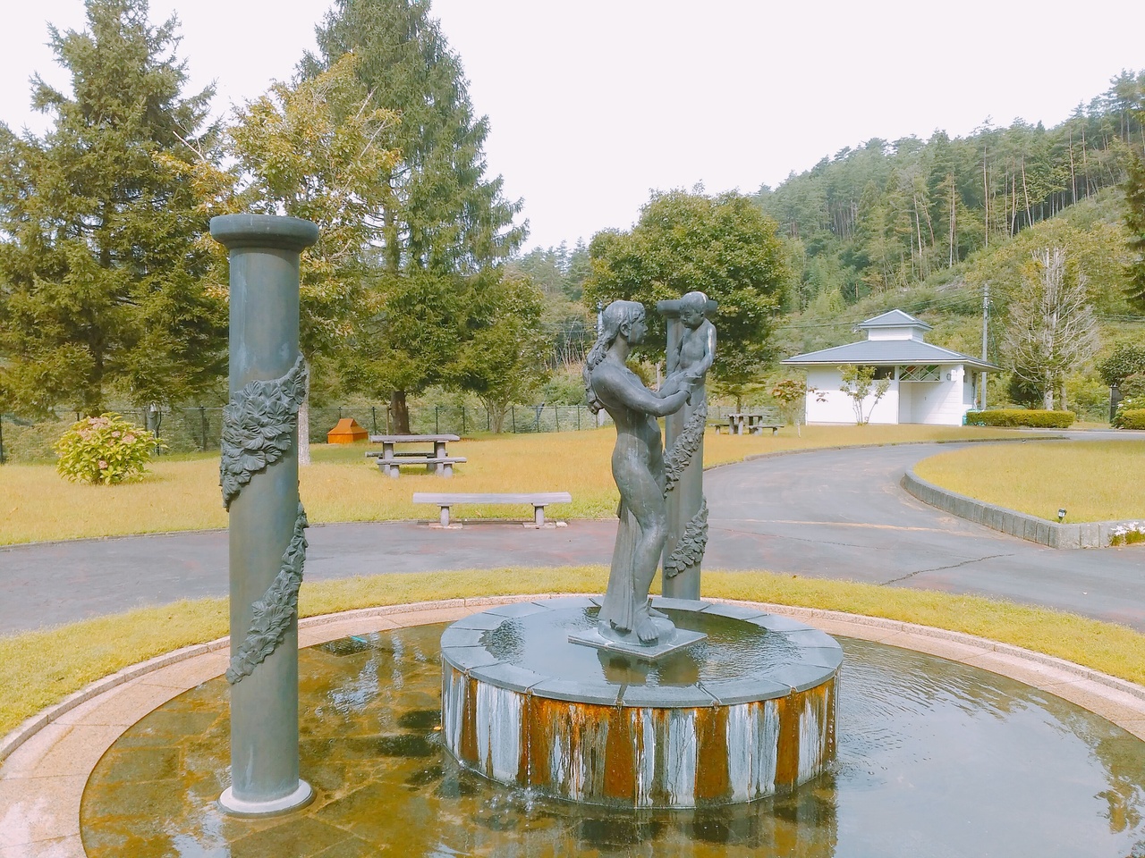 資料館の庭には母子像がある聖なる泉があり、神聖な感じです。