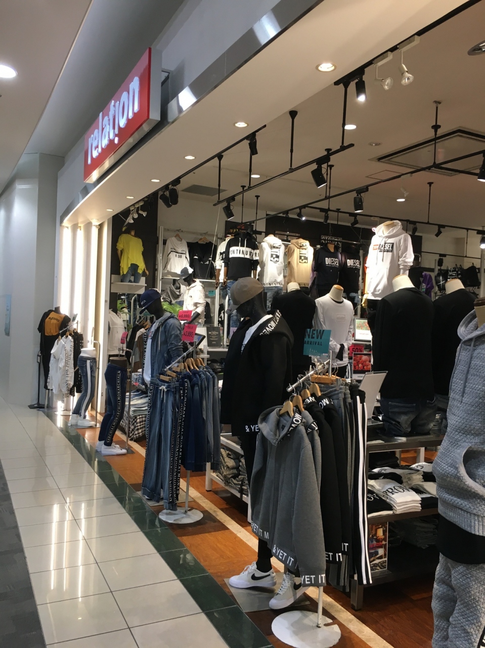 若者向けの洋服屋で10代や20代向けが主なようでした。ズボン、トレーナー、パーカー類が多く販売されていて、冬服ではなく秋ぽい薄めの服が多かったです。靴を履いたマネキン風のものも展示されていました。店内は品がびっしりと置いてあるので狭いです。