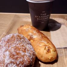 コーンパンとクラップフェン、カフェオレを購入。コーンパンは米粉パンみたいにもちもち。