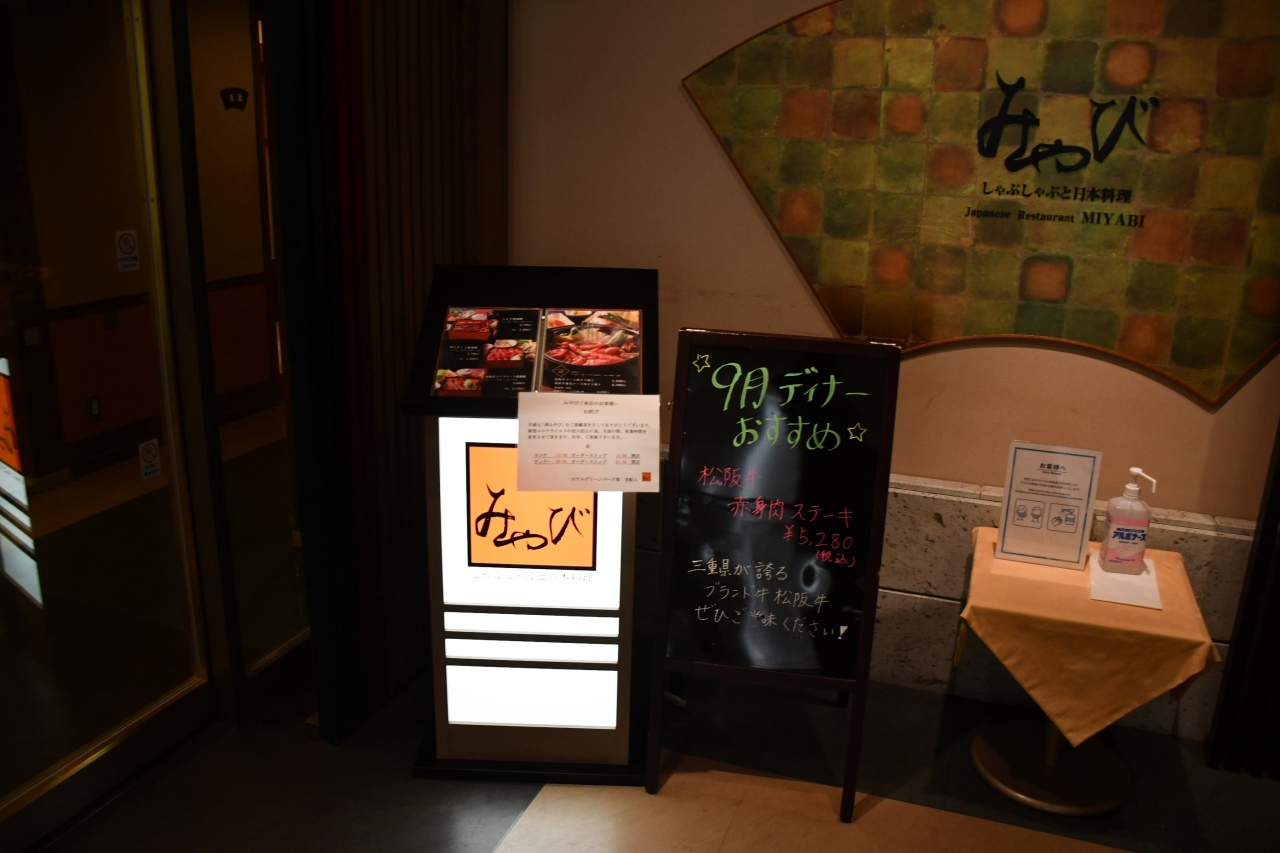 グリーンパークホテルは津駅から歩いて一分、二階の改札口から回廊で繋がっています。この二階部分にあるご飯処です。晩御膳は、松阪牛のすき焼きで大満足でした。飲み物も付いていました。閉店が九時と、ちょっと早めです。