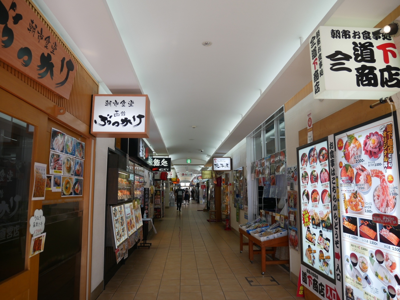 函館朝市のJR函館駅寄りの端にあるエリアには海鮮丼屋さんが軒を連ねている通りがあり、どんぶり横丁と呼ばれています。