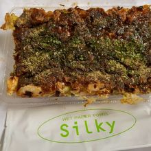 お好み焼きは少し高めだけあって具沢山。濃いめのとろみのあるソースと蒸し焼きされたキャベツのとろみが特徴でした。富士山麓「あわび茸」が入っているとのことでしたが、とろとろの中に混ざって判別できませんでした。