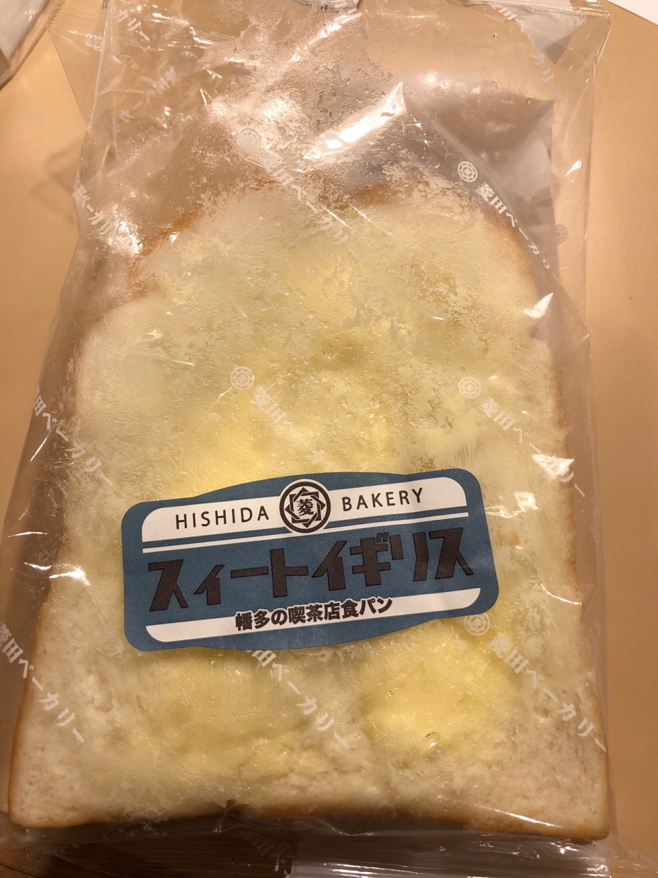 羊羹ぱんが有名な、宿毛のベーカリーです。羊羹ぱんは、アンパンの上に羊羹が薄くコーティングされています。今回は、高知市内のスーパーで、スィートイギリスを買いました。食パンの上に、シュガーマーガリンが塗られ、昔懐かしい味でした。
