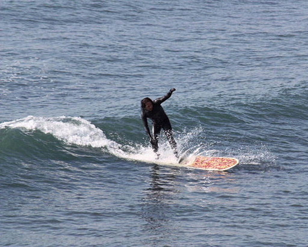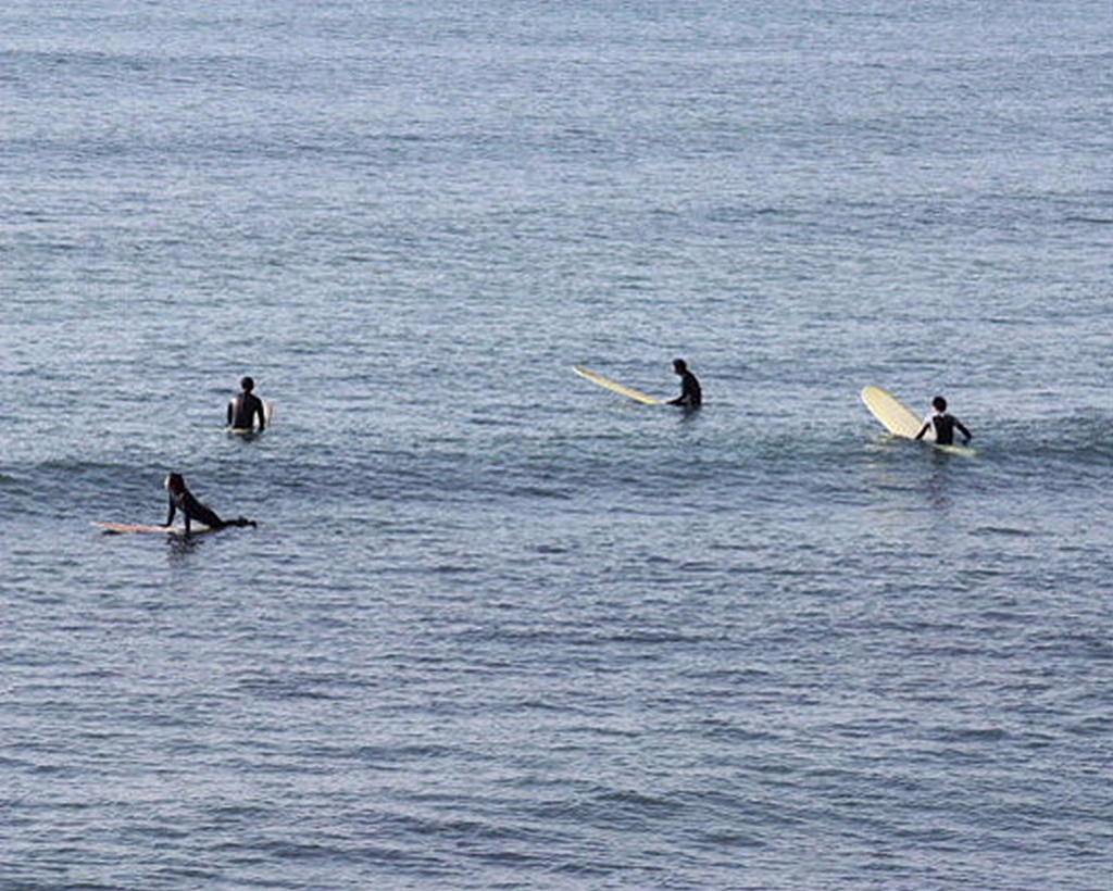 私は七里ヶ浜というと、昔口ずさんだ歌で「真白き富士の嶺」(「七里ヶ浜の哀歌」)という悲しい歌を思いだします。今回私が訪れた時は、若者がサーフィンを楽しんでいて、明るいイメージの海岸でした。ただ、海底には海食台が発達し、複雑な波が立ち、サーフィンは適するが海水浴は適さないそうです。