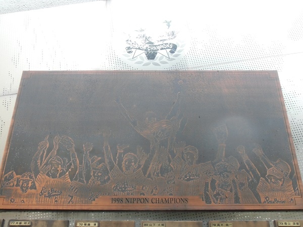 碑は、1998年ベイスターズ日本一を記念して造られたもの。