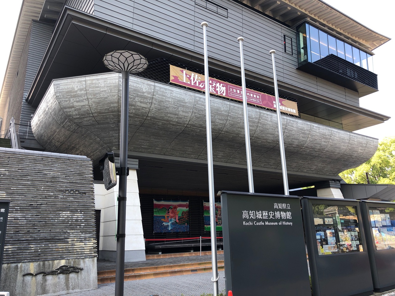 高知城の前にある博物館です。2020年8月は、展示替え期間だったので、一部の展示しか見ることができませんでした。そのかわり、入館料は無料でした。館内には、モーニングメニューもあるカフェや、高知城の眺めが良い展望フロアもあります。