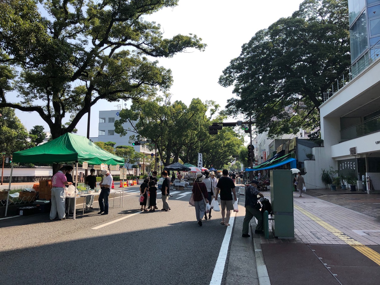 とさでん蓮池町通電停~高知城前まで、約1kmの長い青空市です。毎週日曜日、朝6時ごろから昼3時ぐらいまで開いています。朝の方が賑わっています。農産物の他、木工製品、コーヒー、ゆず製品など、多彩な物が売っています。同じジャンルの店が集まっている傾向があるので、見比べながら買い物できました。