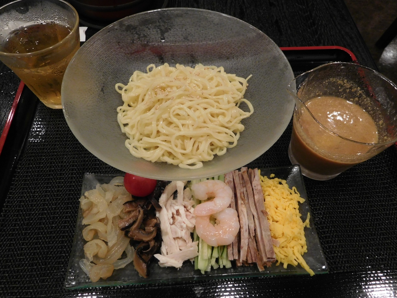日比谷シティ(富国生命ビル)の地下2階レストランフロアにある、中国料理のお店です。ランチは1000円以内のお得なメニューがいろいろとありました。「冷やし中華」のメニューがおしゃれで、美味しそうだったので、注文しました。中華麺、具材、ゴマダレが別々の器に入っていて、自分で混ぜて食べるスタイルで、さっぱりと頂けました。冷たいジャスミン茶が頂けて良かったです。