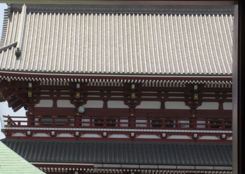 浅草の有名なお寺の浅草寺。その本堂に行くために通る門の一つです。雷門を通って、仲見世の商店街を歩くとこの門にたどり着き、この門を通ると本堂がはっきり見えますので、みんな通る門です。大きくて立派です。小舟町の赤ちょうちんもあります。仁王様もたっていらっしゃいます。本殿から振り返ってみるアングルも結構すてきですよ。