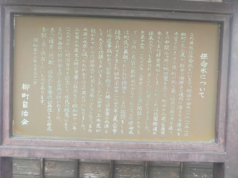 JR上田駅から徒歩15分、駅の北口を出てまっすぐ北へ。柳町の通りをさらに北に行き、矢で出沢川の手前にありました。とてもきれいな井戸でした。触ってみたら、とても冷たくてびっくるしました。こんな冷たい湧き水があるなんて素敵ですね。