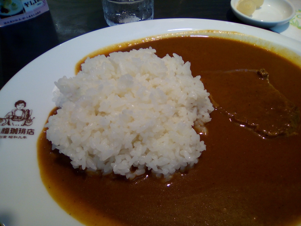 この日は猛暑日。噴き出す汗をどこかで抑えたい、そう思っていた時に目についたのが、この店だ。休日は人が多いが、平日は意外に人が少ない。壁に囲まれていないスタイルの店舗だが、人の目もなく何やら落ち着ける雰囲気だったので、ついでに食事もした。コーヒーは定番の少し濃いめの味だ。カレーは典型的な和食のカレー。上品によそわれたごはんが岸辺でルーが海。一切れだけの丸い肉が島のように浮いていた。量は昼食にちょうどいい。ゆっくりとできたのがよかった。