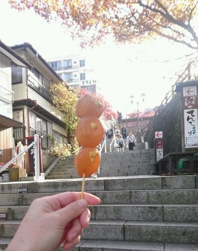 石段たまこんにゃくという名が付いていますが、普通に串刺しした、たまコンニャクです。1本100円だったかな。串に刺してあるので食べ歩きできます。