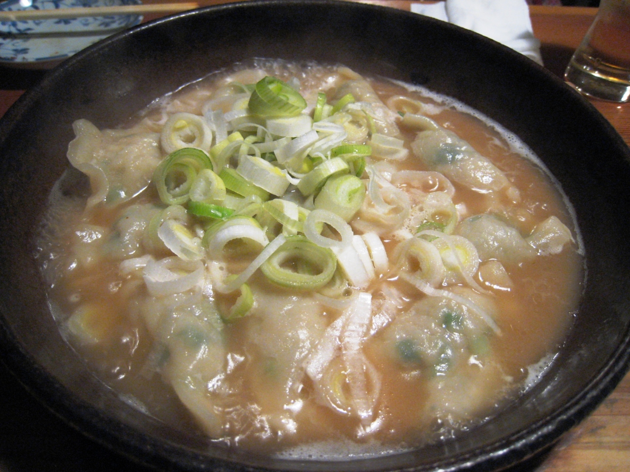 下調べの段階で「場所がわかりにくい」という情報を得ていたので早めに行ったが、やはり迷った。ここだろうか、と恐る恐る入ったら、スタッフの方が「どちらのお店をお探しですか?」。「池田屋さんですが…」「ここですよ」。やっと、見つかった。メーンの炊き餃子はスープで炊き込んだ味わい豊かな一品。また、魚料理は新鮮さが色からも味からも実感できるほどだ。特に「寒ぶり胡麻正油和え」はおすすめだ。一品は「丸腸ごぼうつめ焼」が傑作。
