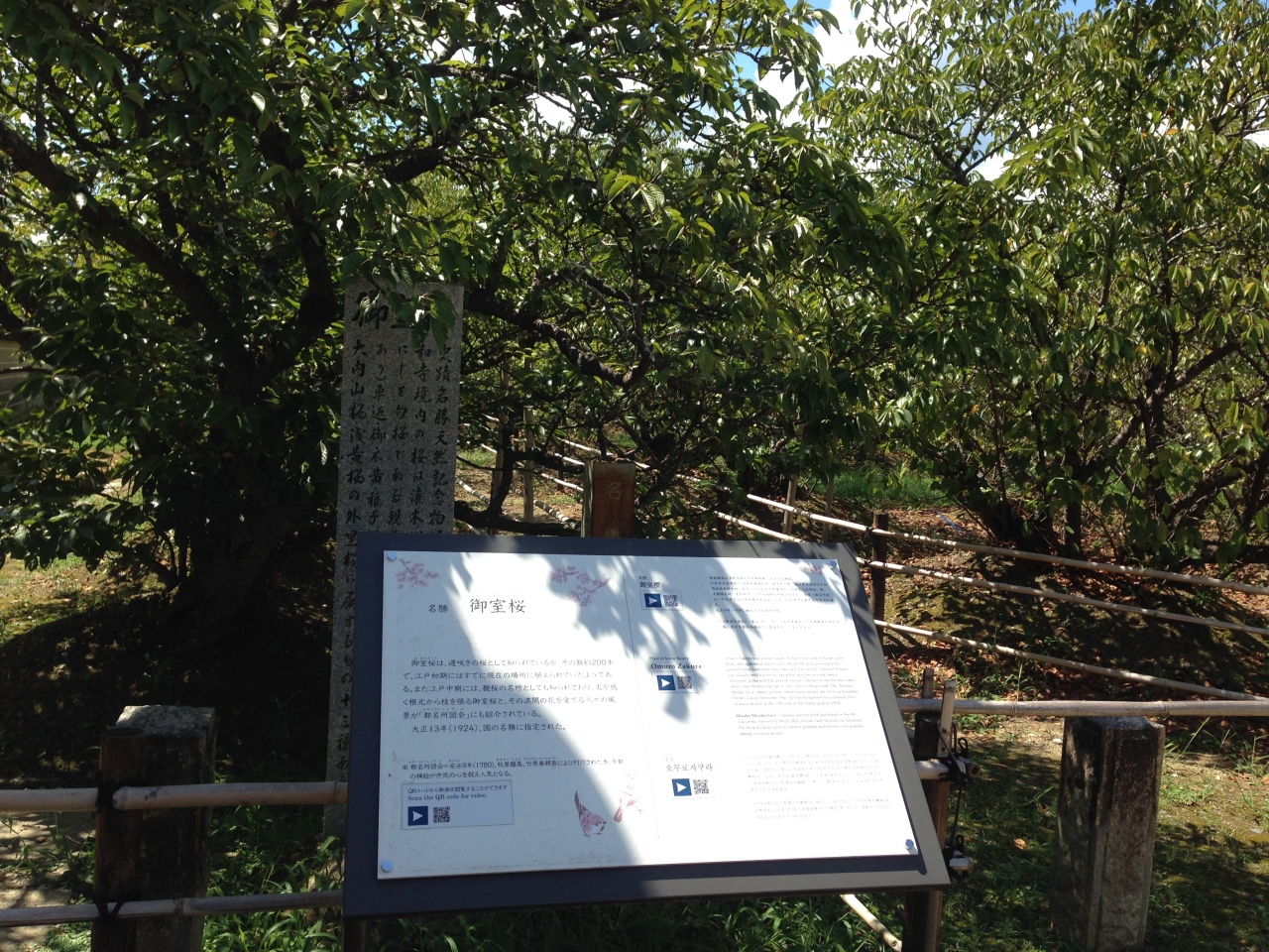 暑い夏に行ったので葉桜でしたが、この枝に桜の花が咲いたら見事だろうと想像できました。今は無料ですが、春は拝観料を払って入ることになります。最近の研究で地盤が粘土層なので根が伸びず背丈が伸びない木々になったと分かったとの事です。