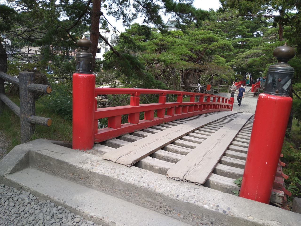 お参りの際には真下に流れる川が見える穴開き橋「すかし橋」を通ります。