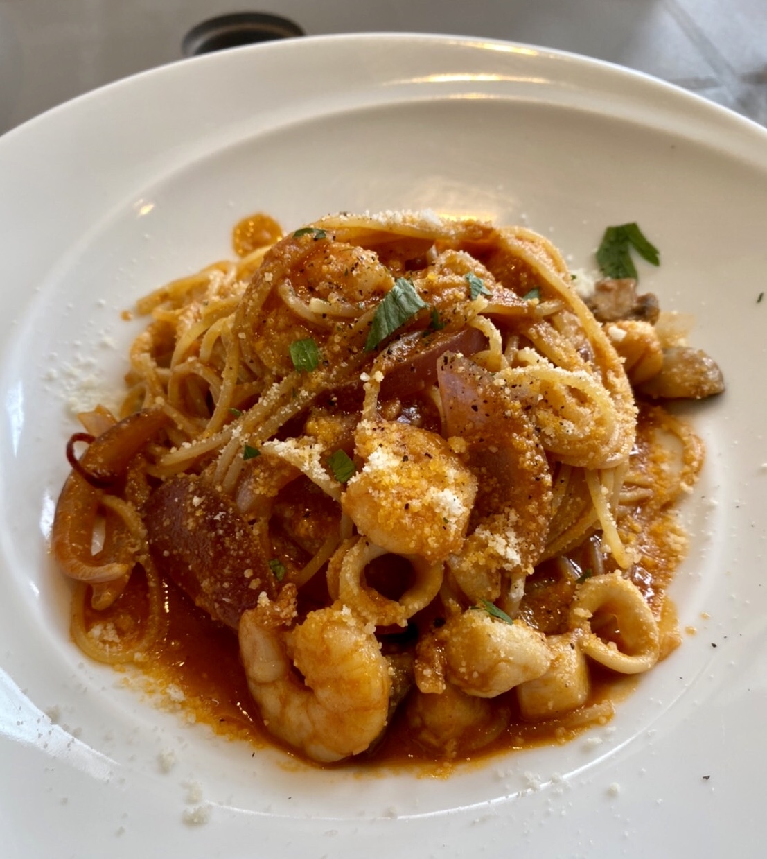 ミニ前菜+フォカッチャ+パスタ+ドリンク+プチデザートで2千円余り。テラス席が広く、とても快適空間でした。もちろんパスタも美味。女子会の小洒落たランチ処としてオススメです。