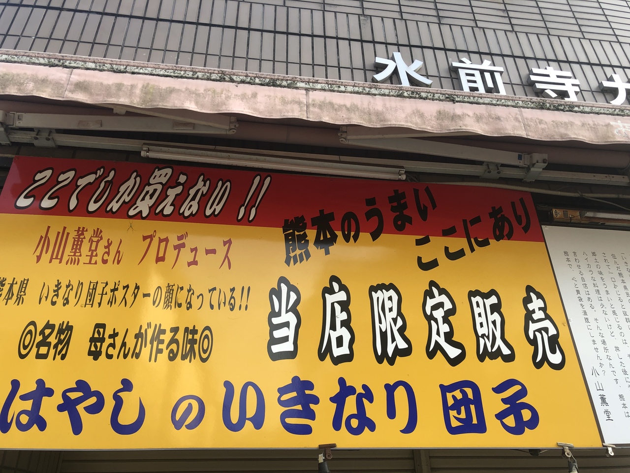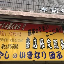 水前寺成趣園の入口のそばにあります。熊本出身の小山薫堂氏プロデュースのいきなり団子を販売しています。一番人気のいきなり団子なので、近くのお店ではいきなり団子を販売していませんでした。15時頃に行った時は完売していました。確実に買うには、午前中に行かないとダメなようです。