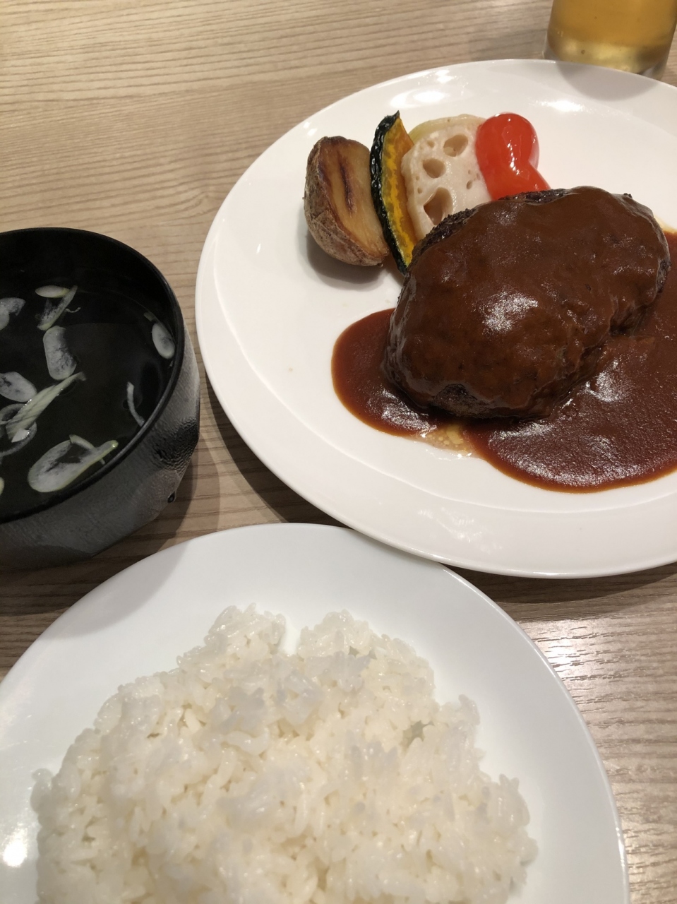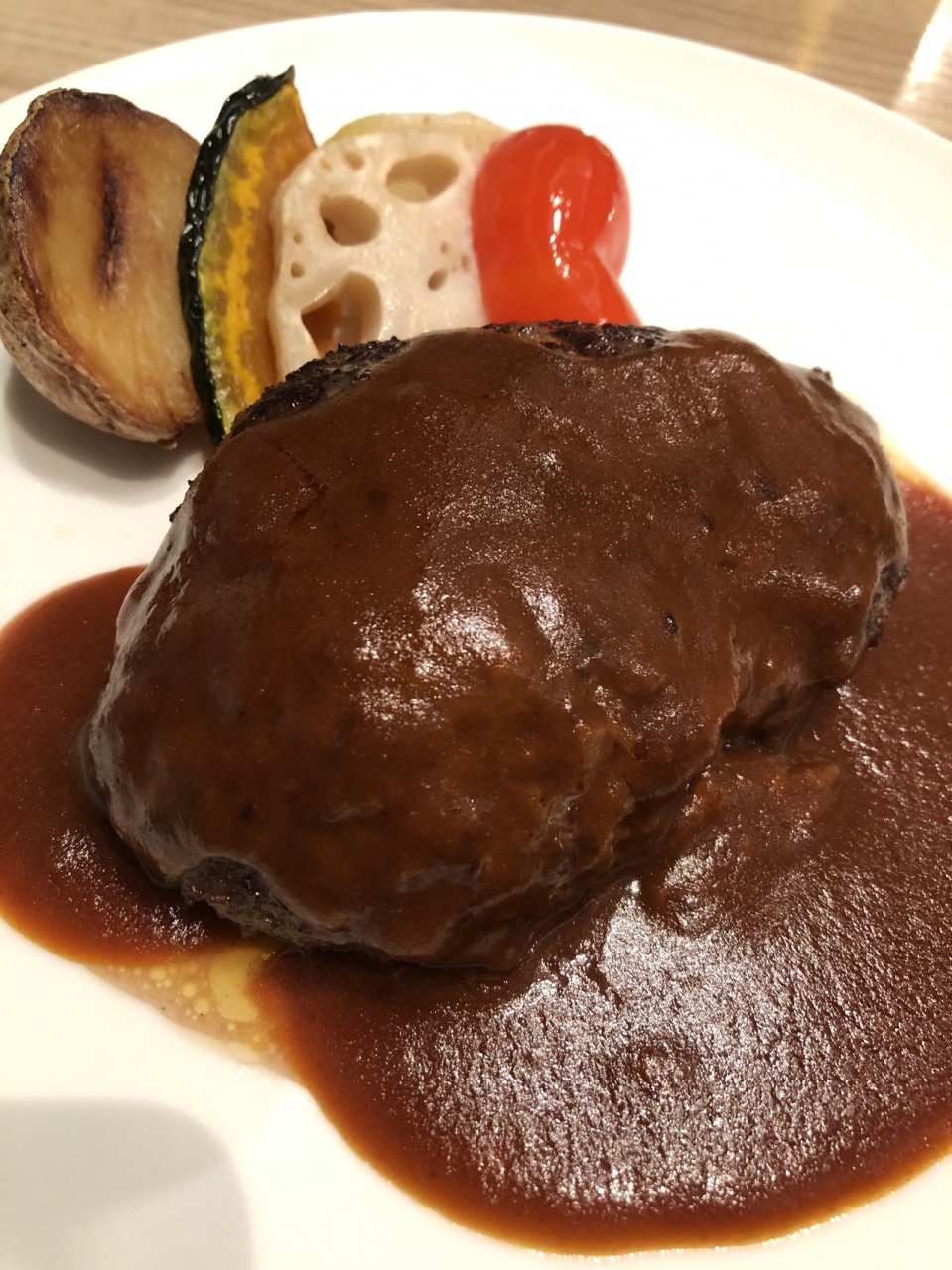 ハンバーグにはデミグラスがたっぷりとかけられている