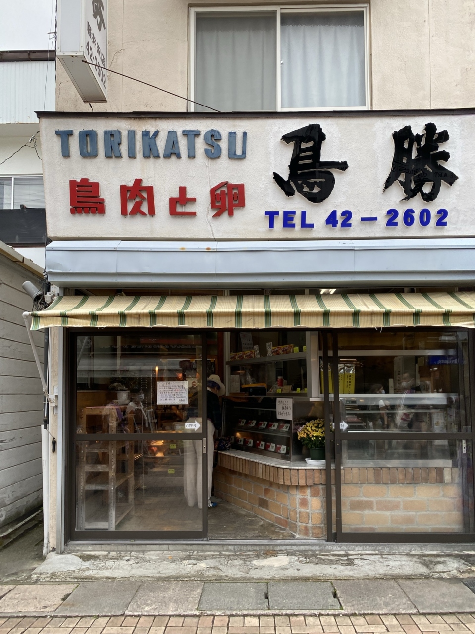 旧軽銀座から入ってすぐの鳥屋さん。店頭には鳥の丸焼きと手羽の唐揚げの販売。奥で鳥が丸ごとぐるぐる焼かれています。