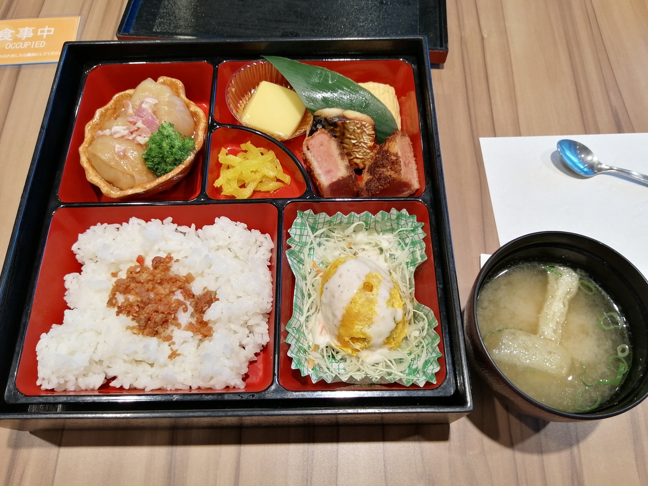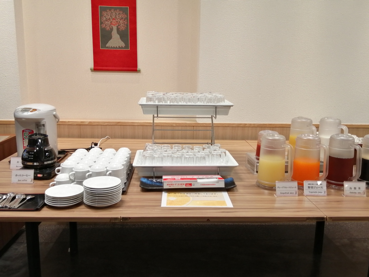 ホテルのモーニングの会場です。普段は、ビュッフェ形式でしたが、今はコロナ対策のため、お弁当でした。ドリンクは、フリ―で、コーヒーは、部屋に持っていくことが出来るので、ゆっくり出来ます。いつものビュッフェは、充実感あるそうで、お弁当は、ちょっと残念でした。美味しかったですよ。