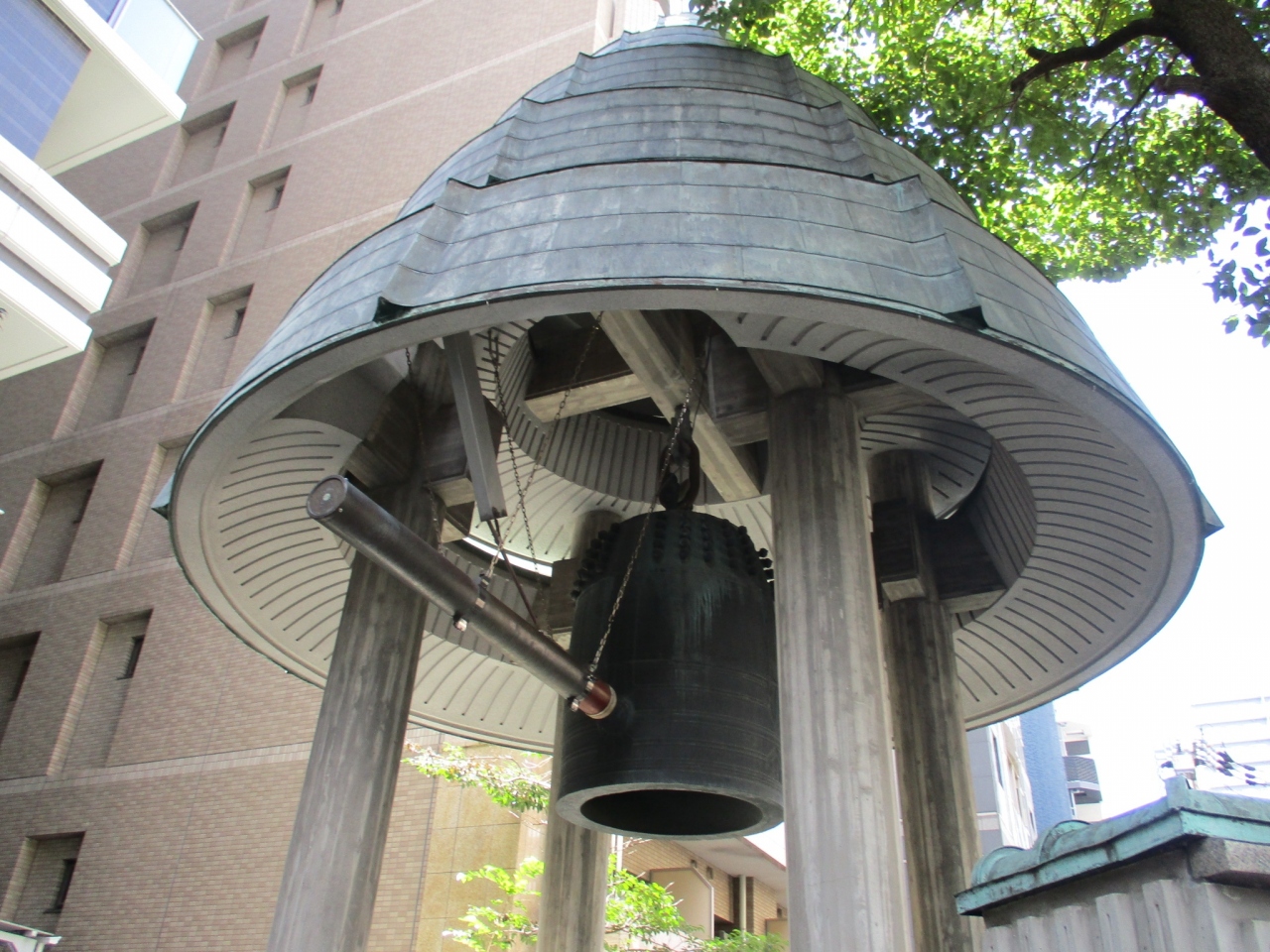 町名にもなっている釣鐘町に大阪町中時報鐘があります。大きく存在感のある鐘です。実はこの場所にきたことがあるのに鐘を見るのははじめて。前に来た時雨が降っていて傘をさしていて、下の碑だけ見つけて、鐘に気づかず。いったいどこに・・?と思っていました。同じ場所だったなんてびっくり。鐘はいろんな場所を移動して元の場所に戻ってきて、コンピューター制御で1日3回今も時を知らせているようです。大切に保存されていることが置いてあるパンフレットでわかりました。