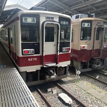 東武は集約である為、行き止まりとなっております。写真を撮るなら、この行き止まりの当たりだと、二台並んでの掲載ができます。また、先頭車両に乗っていれば、改札口に近いので急ぎの方は、下今市乗り込む際に注意しておくと便利です。現在レトロカラーの車両が走っていて、鉄道ファンに人気です。