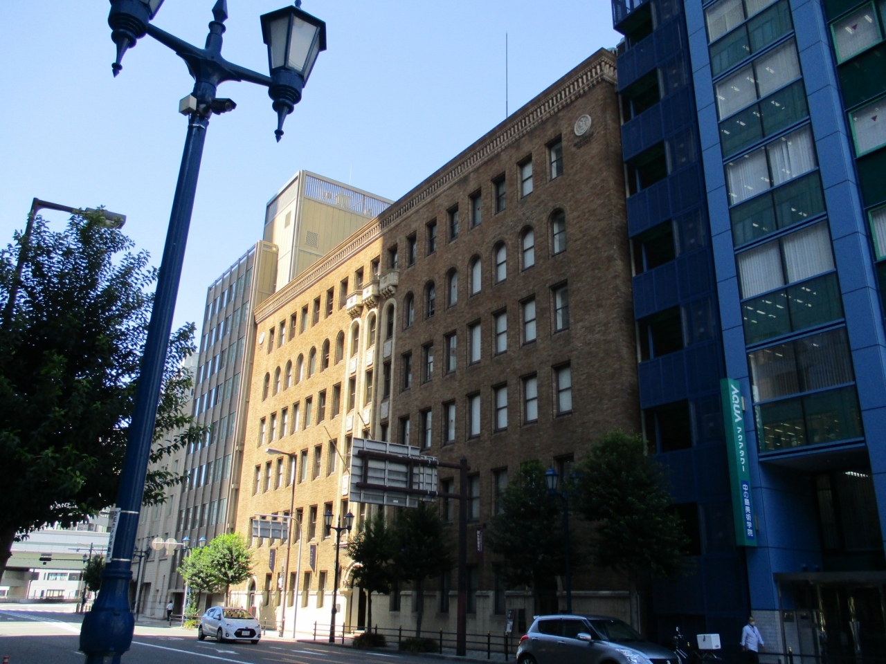ルポンドシエルビルは中之島を望む川沿いに建つ旧大林組本店のビルです。大正15年に建てられました。大林組本店がこの建物の真向かいの超高層ビルに移ってからは、料理学校辻学園の校舎として使われていました。平成19年に耐震補強が施され、今は高級フランス料理店ルポンドシエルがテナントとして入居しています。また大林組の歴史資料館もあります。上階にあるバルコニーや入り口の装飾が凝っています。全体的に茶色いタイル張りで上品な雰囲気のビルです。